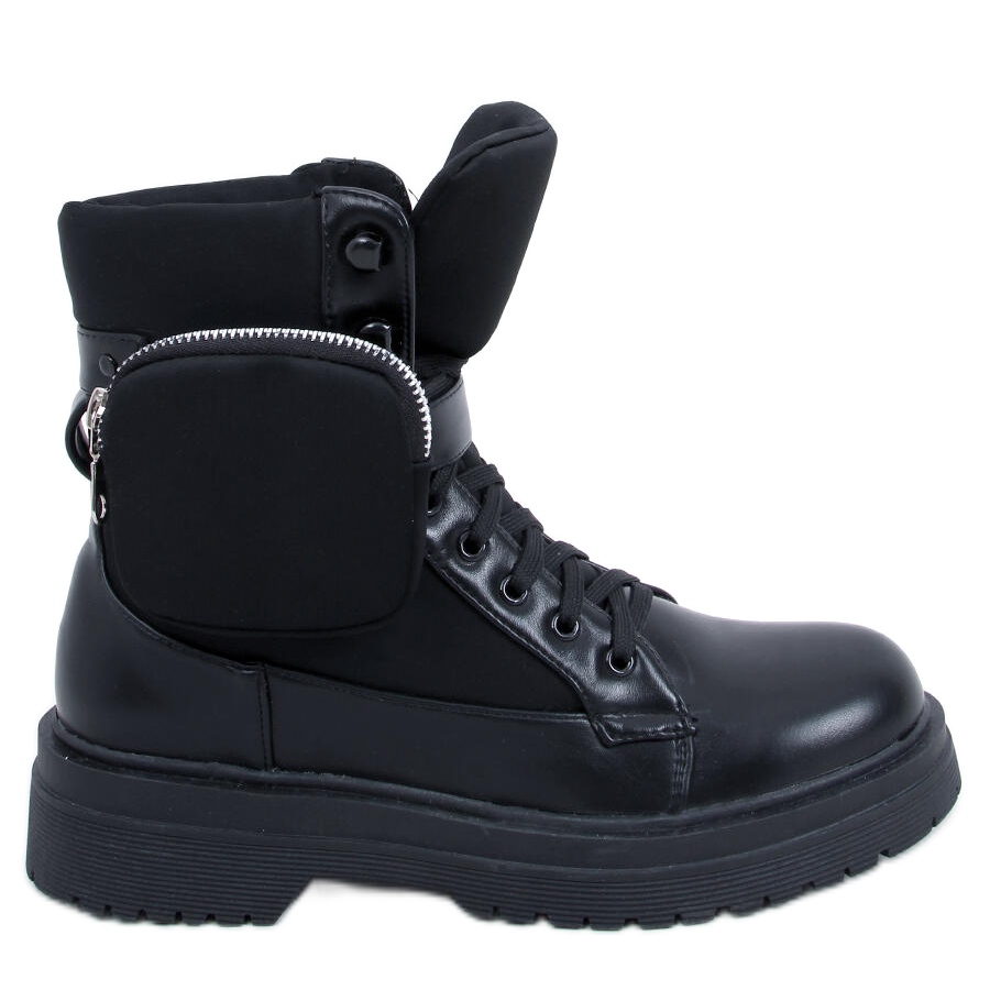 Apresentamos botas militares elegantes e extremamente elegantes com uma bolsa destacável, que é a escolha perfeita para uma mulher moderna. Feito de combinações de couro ecológico de alta qualidade e tecido de neoprene durável, esses trabalhadores negros de outra marca certamente atrairão atenção e completarão qualquer estilização.