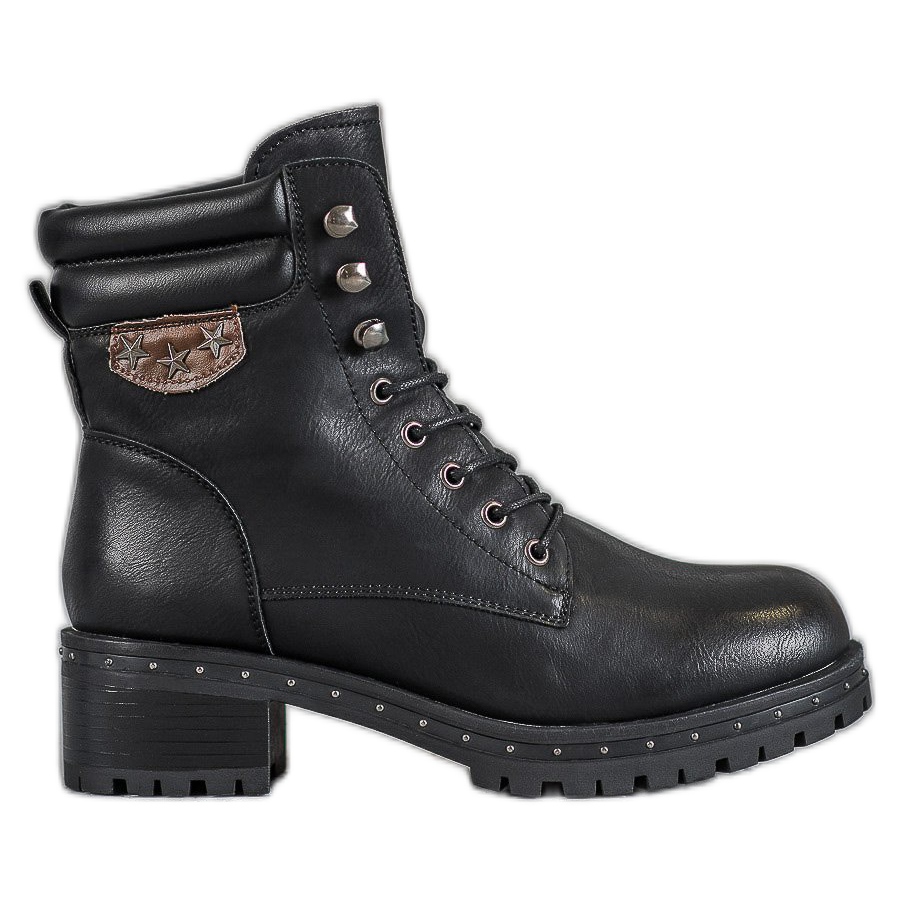 Descubra estilo e conforto únicos com botins militares SHELOVET em uma elegante cor preta. Estes enormes sapatos femininos são feitos de couro ecológico de alta qualidade, o que os torna ecologicamente corretos e extremamente modernos. A gola reforçada e a parte superior elevada acima do tornozelo proporcionam excelente suporte e conforto de uso.