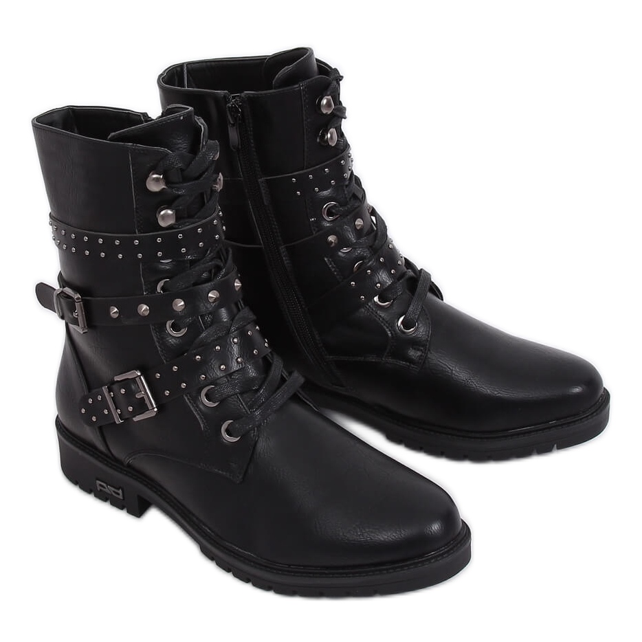 As botas militares pretas 1952-11 são a escolha perfeita para mulheres que valorizam estilo e conforto no dia a dia. Estas elegantes botas de trabalho na cor preta atemporal certamente atrairão a atenção dos fãs do toque rock. Equipados com numerosos tachas, acrescentam carácter a cada estilo.