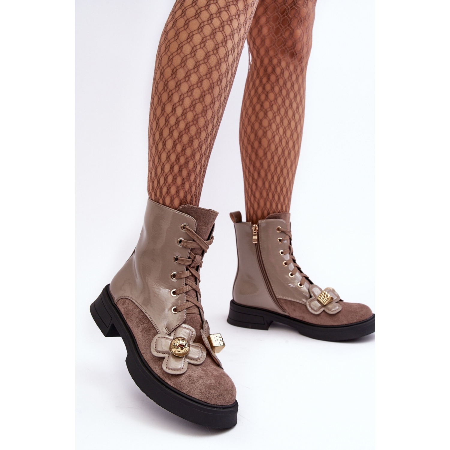 Além disso, o design elegante das botas foi enriquecido com flores encantadoras feitas de material e plástico, o que lhes dá um personagem único. A altura da parte superior de 15,5 cm parece ótima na perna, e a cor cinza faz com que essas botas se misturem facilmente com muitos estilos - casuais e mais elegantes.