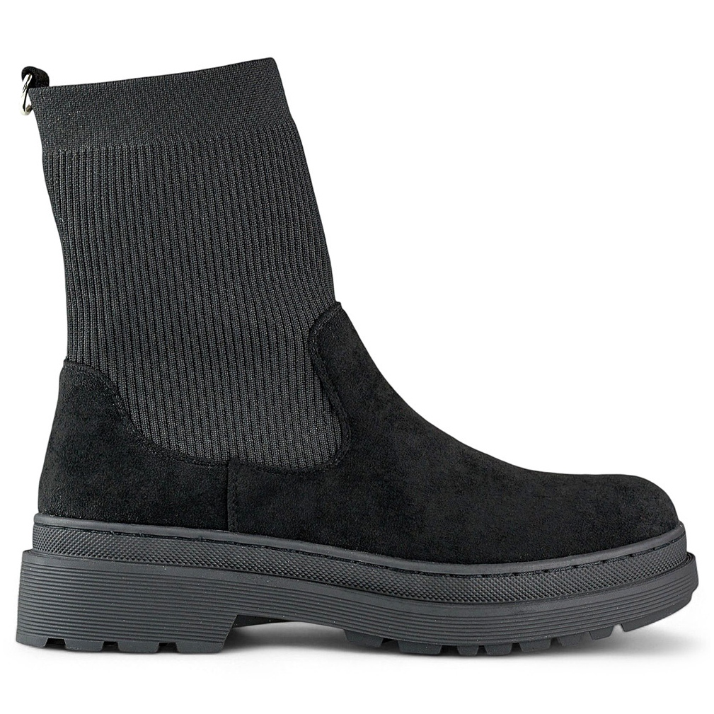 Essas botas são feitas de couro ecológico de camurça, o que as torna não apenas elegante, mas também ecológica. Eles se misturam bem com roupas casuais e mais elegantes, e a cor preta os faz se encaixar em todos os guarda -roupas.