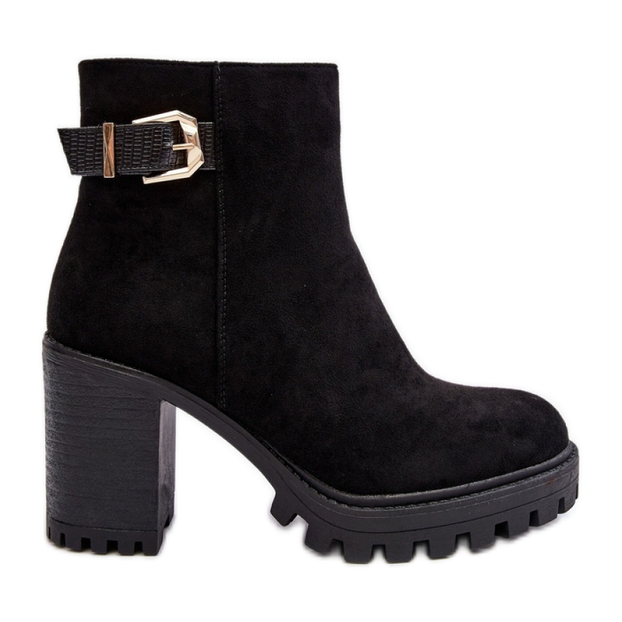O cinto com um elegante grampo de ouro decora a parte superior, adicionando um sotaque moderno e elegante. Graças ao isolamento do aquecimento, essas botas proporcionam conforto térmico, mesmo nos dias mais frios.