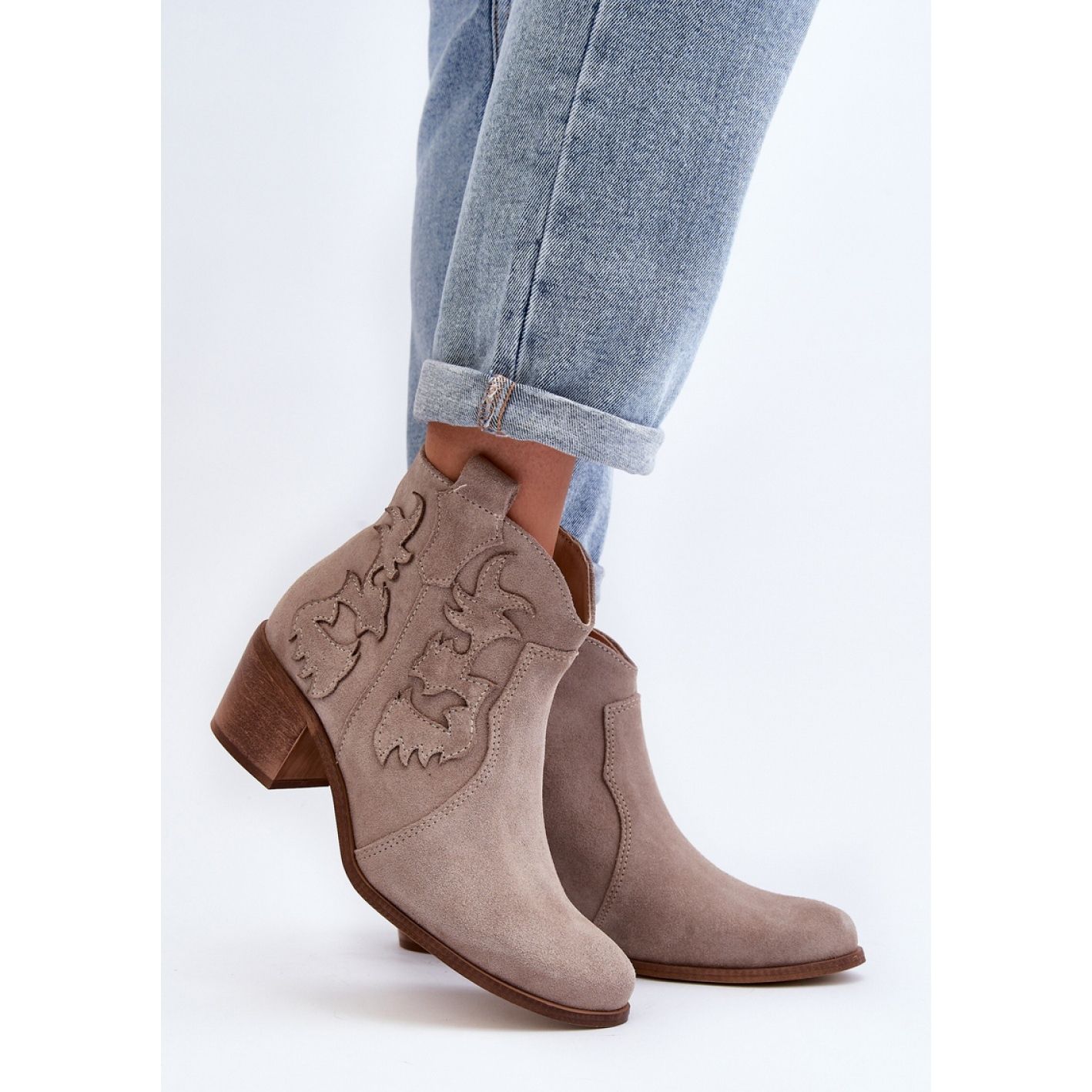 Modelo Botki Zazoo 3426 Cappuccino de etapa em estilo é a escolha perfeita para mulheres que desejam combinar conforto com elegância. Feito de camurça natural de alta qualidade, essas botas bege não são apenas elegantes, mas também duráveis. Seus 12 cm de altura aderem ao tornozelo e manchas decorativas adicionais dão a eles um personagem único.