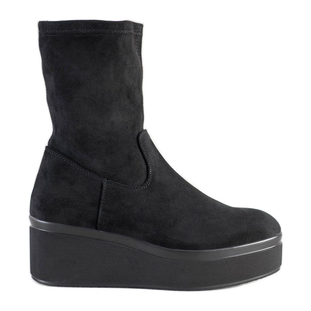 As botas plataforma Sergio Leone na cor preta são a escolha perfeita para mulheres modernas que valorizam elegância aliada ao conforto. Feitas em couro ecológico de alta qualidade imitando camurça, essas botas da moda são o complemento perfeito para o estilo outono-inverno.