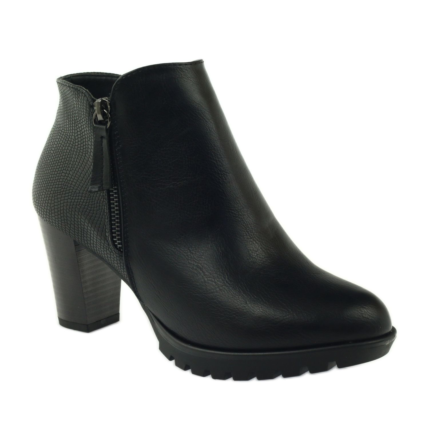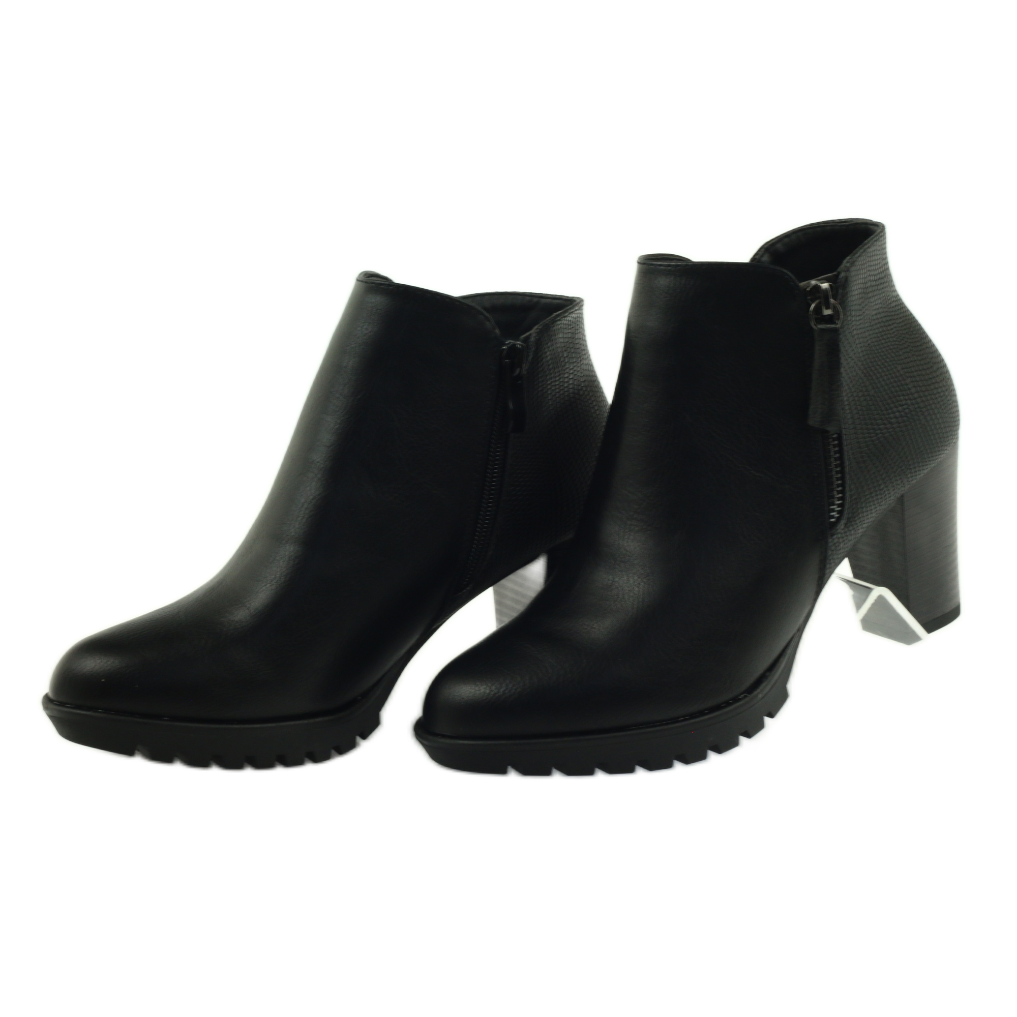 Apresentamos elegantes botins pretos de salto alto 1708 da conceituada empresa M.Daszyński, que certamente irão enriquecer o seu guarda-roupa. Feitos de couro sintético de alta qualidade, estes botins combinam um design elegante com um uso confortável, tornando-os a escolha perfeita para os meses de inverno.
