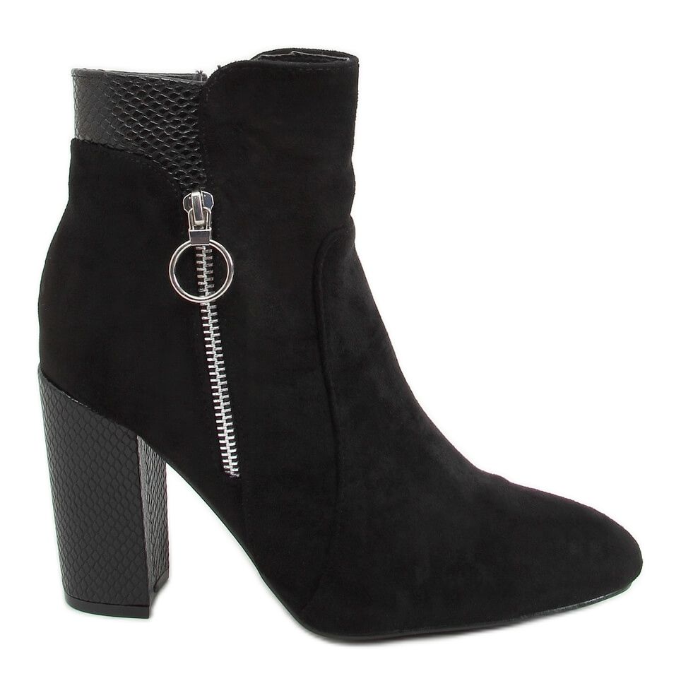 Apresentamos os botins de salto alto 77-231 Pretos, que encantam pelo seu design único e conforto excepcional. Feitos de camurça ecológica e couro ecológico, estes elegantes botins são a combinação perfeita de estilo e conforto. A sua cor preta faz com que combinem com vários estilos, do casual ao mais elegante, e o motivo da pele de cobra acrescenta um carácter original.
