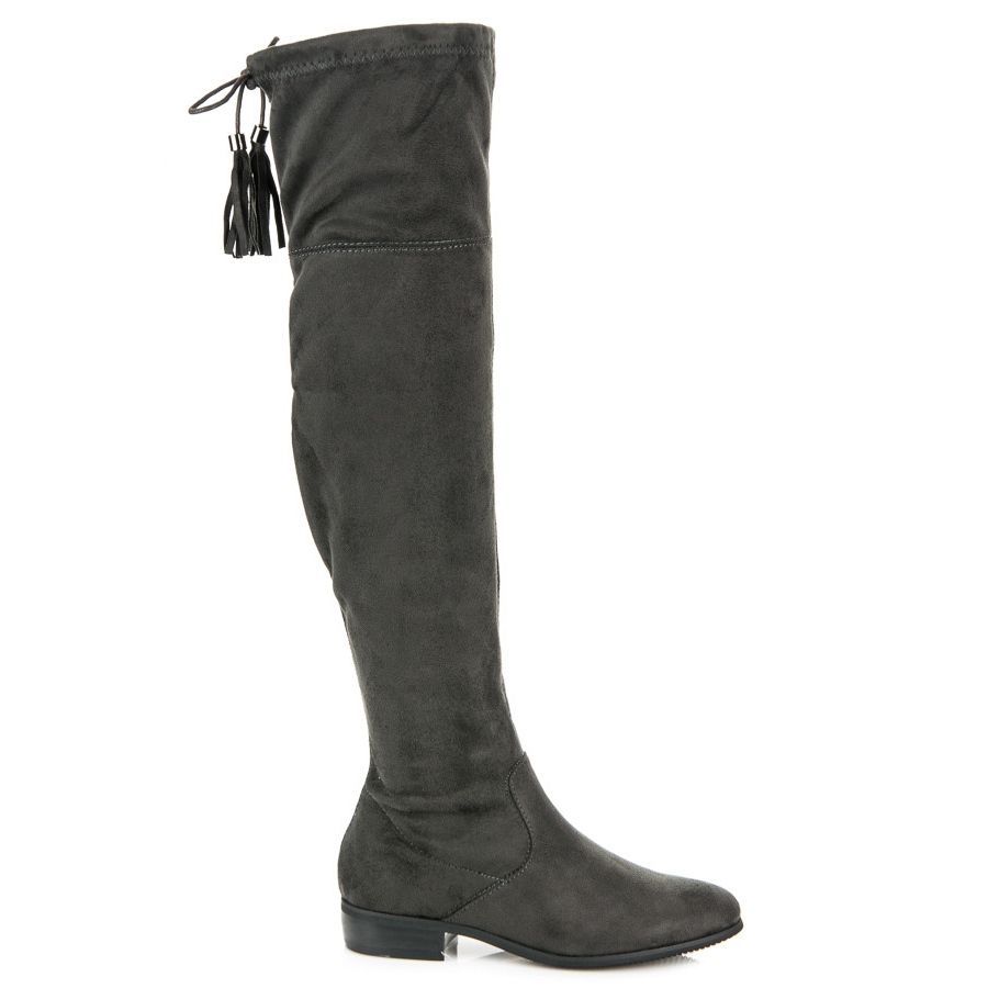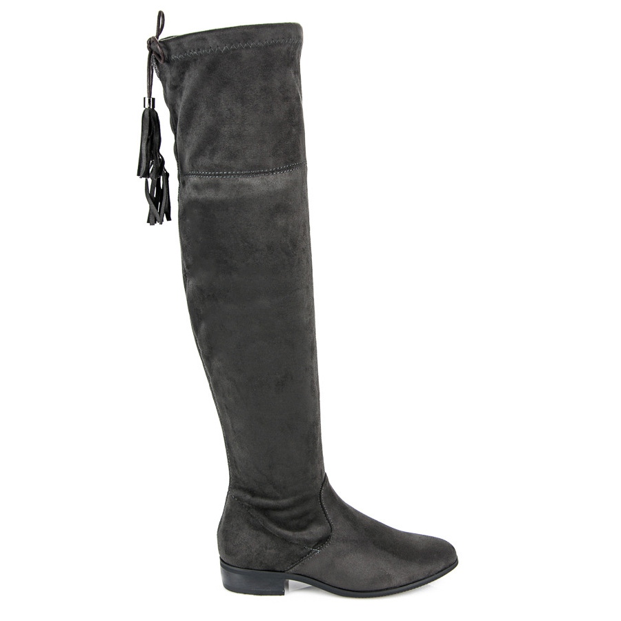 Detalhes: Yes Mile Botas over the knee com franjas cinza