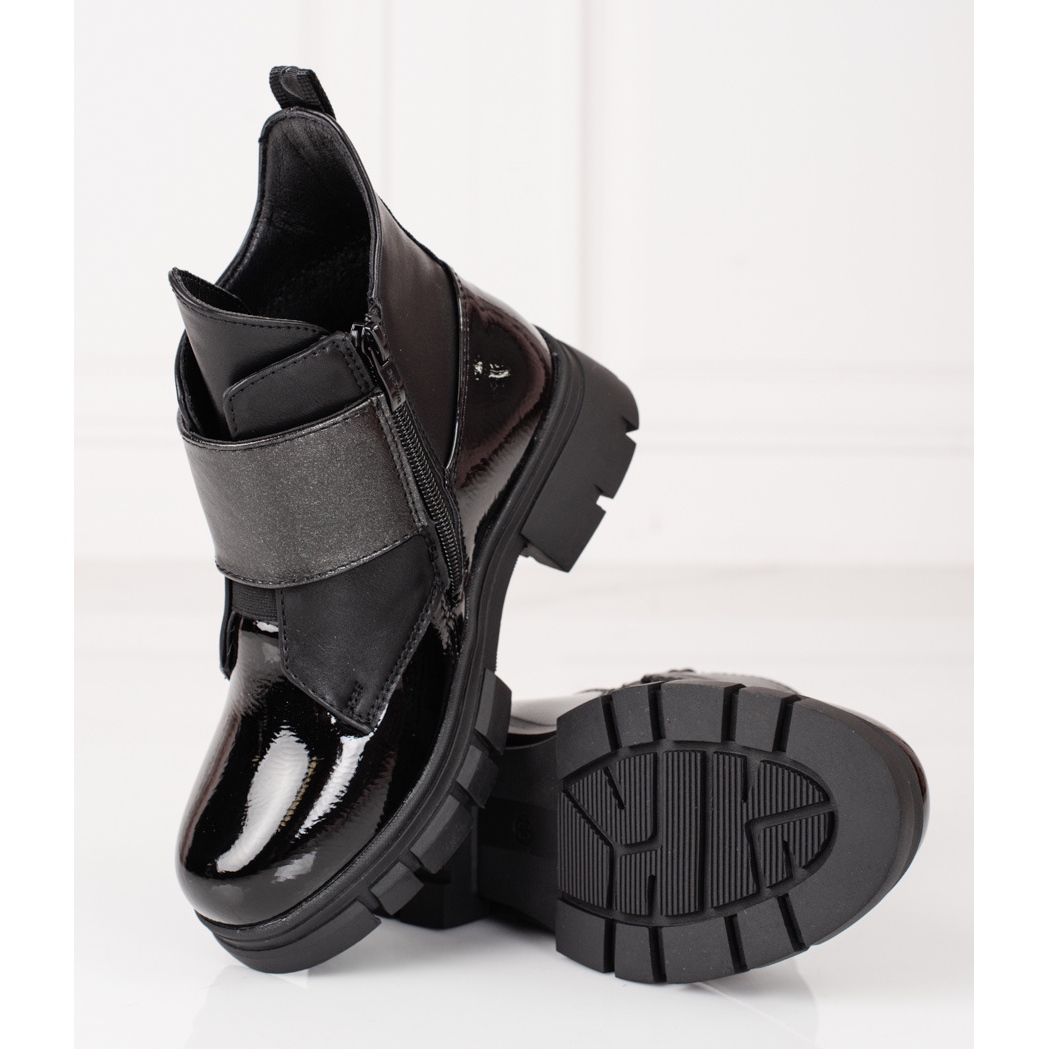 As botas femininas confeccionadas em couro ecológico envernizado Shelovet na cor preta são a escolha perfeita para as pequenas fashionistas que valorizam estilo e conforto. Estes sapatos elegantes são feitos de imitação de couro de alta qualidade, o que os torna duráveis e fáceis de manter.