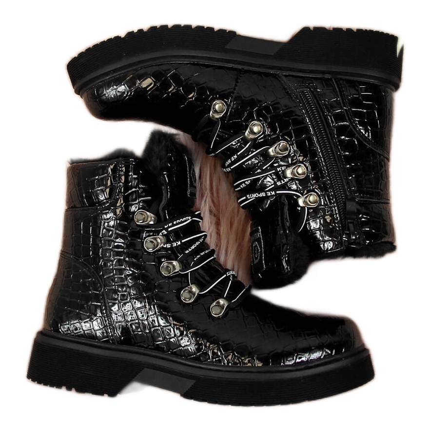 Os botins femininos de crocodilo lacado preto Miss❤E são um must-have no guarda-roupa de qualquer menina da moda! Estes sapatos extremamente elegantes combinam conforto e design encantador. Fabricados em couro envernizado ecológico de alta qualidade, têm um aspecto elegante e impressionante, combinando perfeitamente com as últimas tendências.