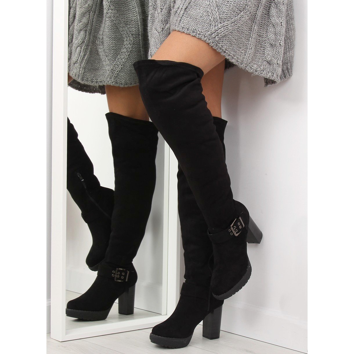 Um salto bloco estável de 9,5 cm de altura e uma plataforma confortável de 2,5 cm não só aumentam a altura, mas também tornam a figura mais esbelta. As botas de cano alto combinam perfeitamente com uma variedade de estilos, combinando perfeitamente com minissaias e saias na altura do joelho, o que as torna um item obrigatório no guarda-roupa de qualquer mulher.