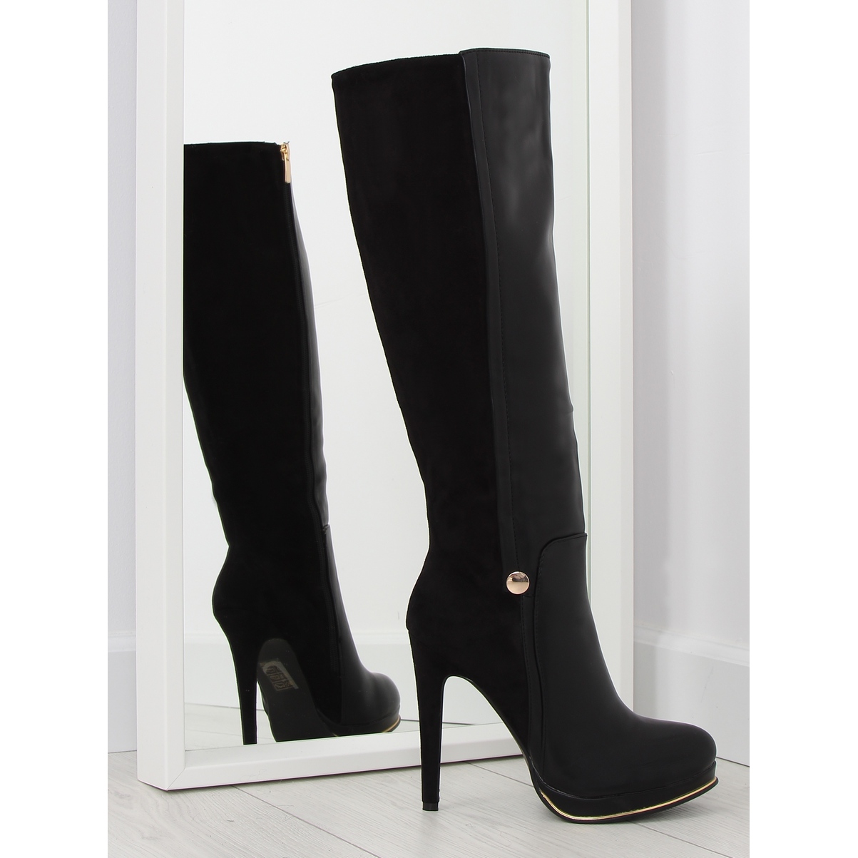 As botas plataforma pretas JU860 são a quintessência da elegância e do estilo moderno. Com 11,5 cm de altura e uma impressionante plataforma de 2 cm de altura, enfatizam perfeitamente a figura feminina e acrescentam autoconfiança. Seu visual chique se deve à sola cuidadosamente acabada, decorada com elegantes detalhes dourados, que os diferencia dos demais modelos.