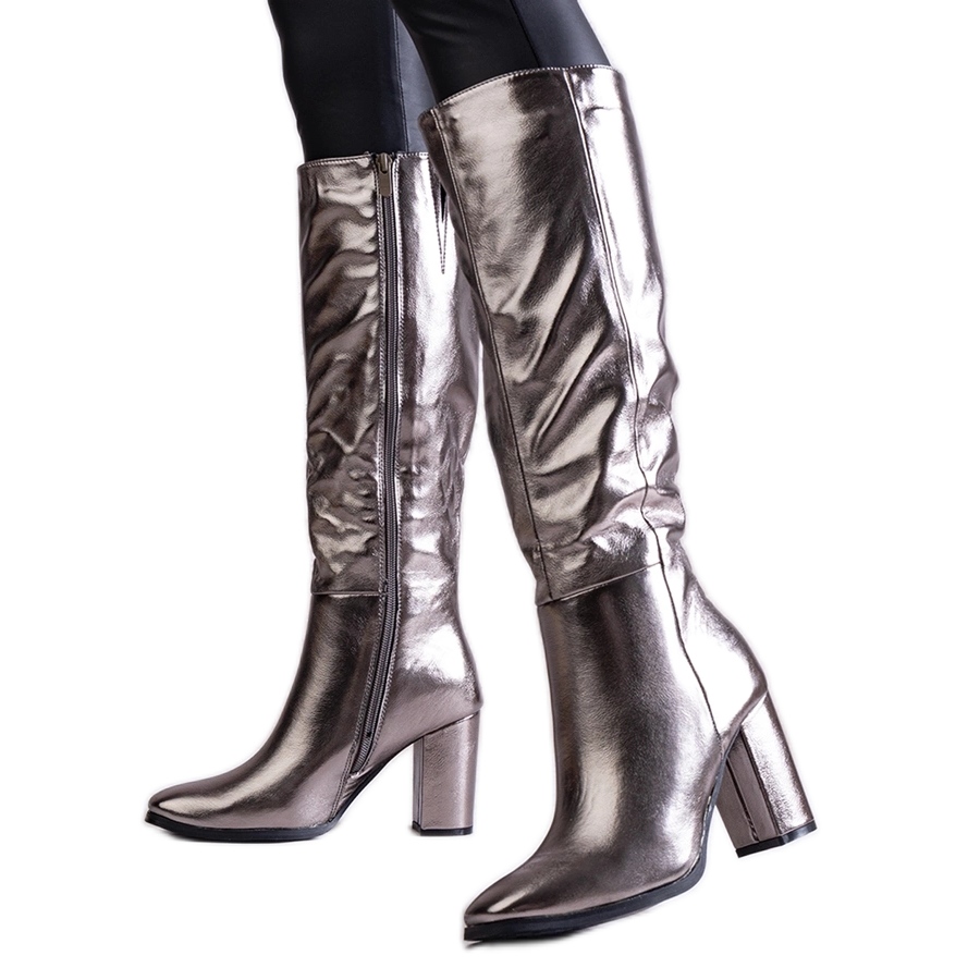 Botas de prata no posto de couro Toume é uma adição da moda que certamente atrairá a atenção de todas as mulheres. Esses sapatos elegantes, feitos de couro ecológico de alta qualidade, deliciam -se com seu acabamento metálico, que se encaixa perfeitamente nas tendências atuais.