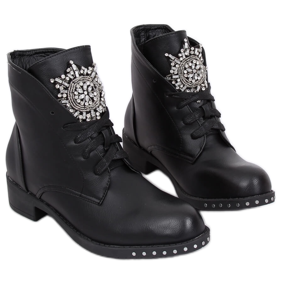 Apresentamos as exclusivas botas bovver pretas 100-902BO-1 Black II Género, que são a escolha perfeita para os amantes da moda e da extravagância. Esses trabalhadores com cadarços combinam estilo e caráter, e seu design exclusivo atrai a atenção. A sola decorada com rebites e uma vistosa lingueta cravejada de pedras brilhantes distinguem-nos dos restantes modelos do mercado.