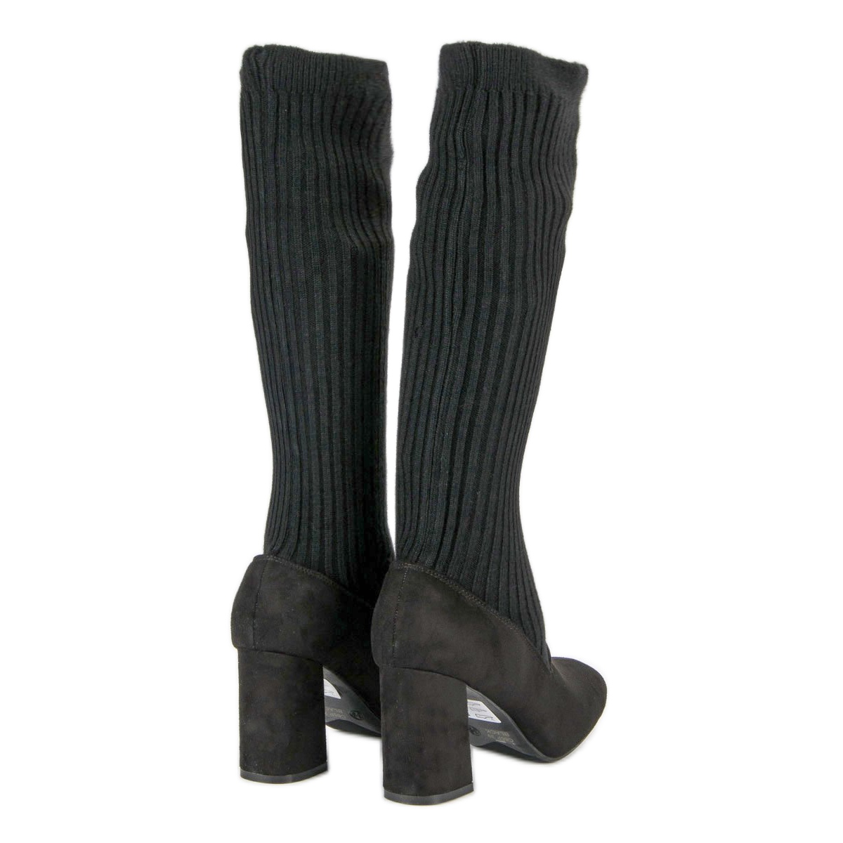São botas exclusivas da marca Seastar, obrigatórias para toda mulher corajosa que valoriza originalidade e estilo. Estas botas pretas justas distinguem-se pelo salto alto de 8,5 cm e pela parte superior em material que imita uma meia até ao joelho, o que lhes confere um carácter único no calçado outono-inverno.