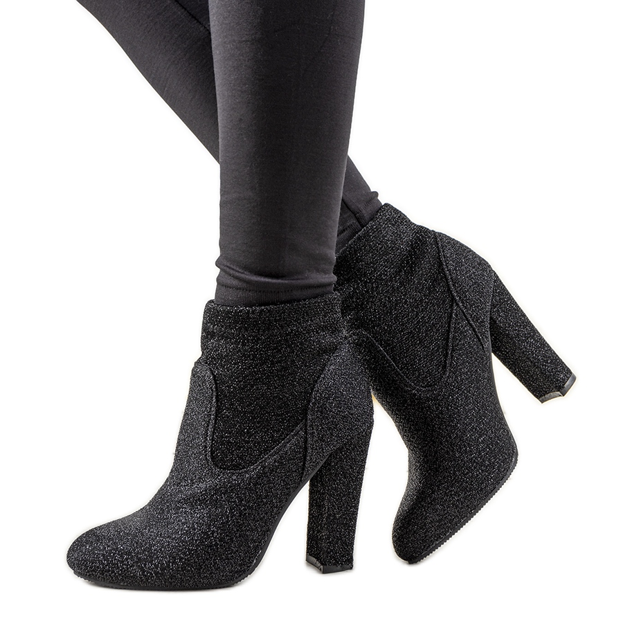 Detalhes: Botas pretas brilhantes de cano alto no poste Birgit preto