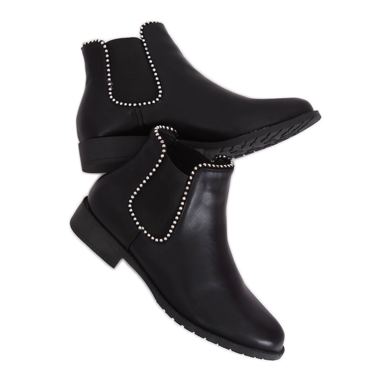 Detalhes: Botas pretas Chelsea com miçangas Q-30 pretas preto