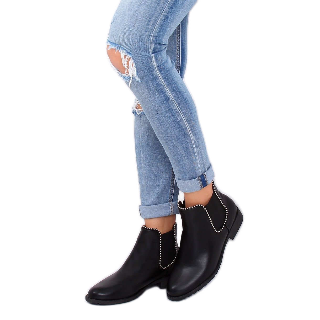 Adicione um pouco de estilo rock ao seu guarda-roupa com os botins Q-30 Black com contas. Estes elegantes botins femininos caracterizam-se por um design interessante que chama a atenção graças às vistosas bolas prateadas que decoram a sua linha. Confeccionados em couro ecológico brilhante, garantem não só um ótimo visual, mas também conforto de uso.