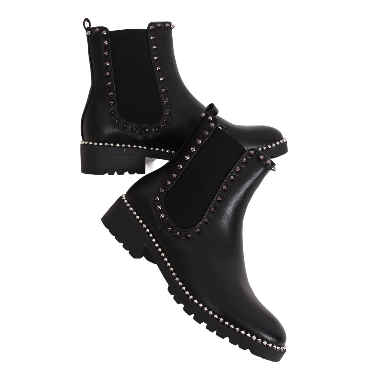Descubra as botas Chelsea pretas femininas com tachas NC826 Black - perfeitas para os amantes da moda que procuram um calçado original e confortável para o dia a dia. Estas atraentes botas distinguem-se por uma sola presa, que garante excelente aderência e conforto de uso. Contas elegantes são colocadas ao redor da sola e inserções flexíveis decoradas com tachas adicionam um caráter único ao modelo.