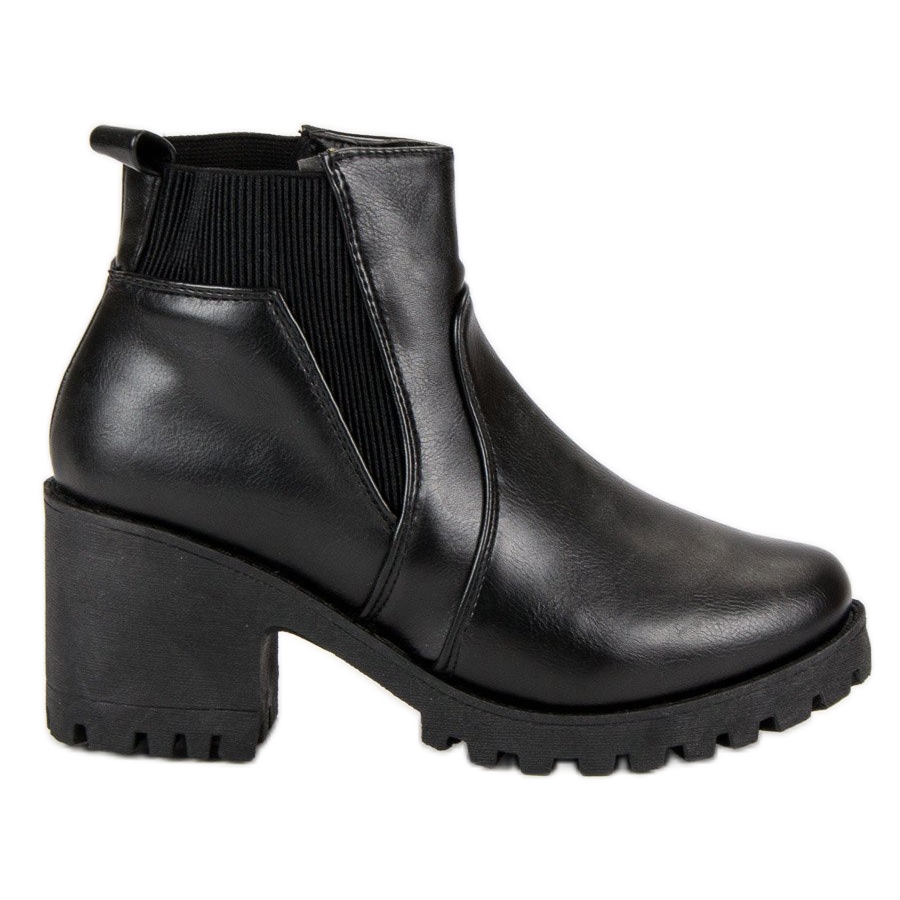 As botas Chelsea pretas de salto alto são a escolha perfeita para toda mulher moderna que deseja combinar estilo com conforto. Estas botas elegantes, confeccionadas em couro ecológico, são um elemento atemporal do guarda-roupa que cabe nos mais diversos estilos. Graças à clássica cor preta e ao padrão simples, estas botas Chelsea combinam perfeitamente com looks casuais e mais formais.