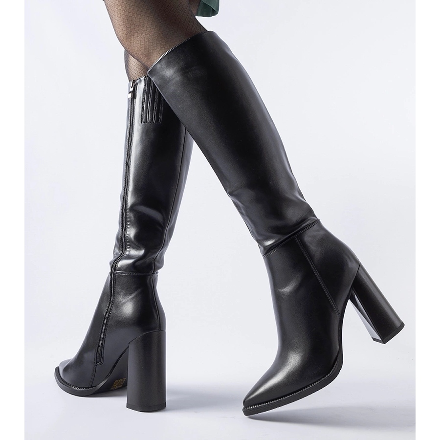 Detalhes: Botas pretas clássicas de salto alto preto