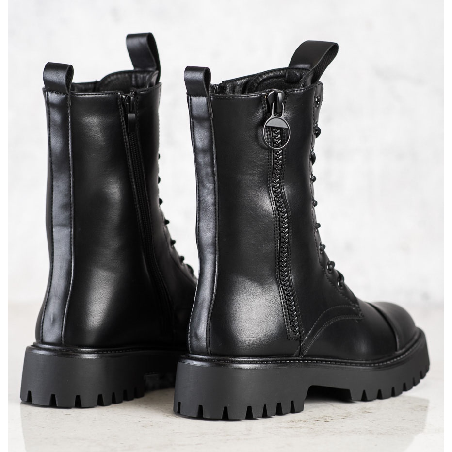 Graças à clássica cor preta, estas botas podem ser facilmente combinadas com vários estilos - desde jeans a vestidos, acrescentando um toque de rock ao seu look. Não espere, escolha as botas bovver SHELOVET e desfrute de moda e conforto durante toda a temporada outono/inverno!