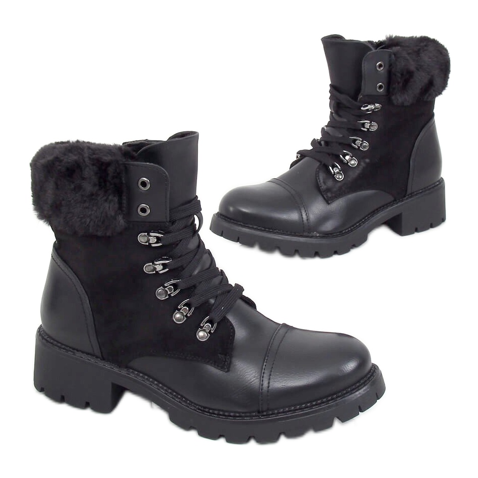 Inna marka Botas pretas com cordões 4063 pretas preto