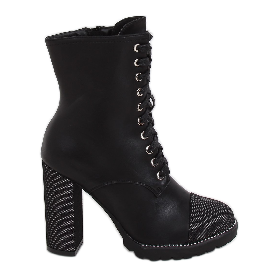 Descubra estilo e conforto únicos graças aos botins pretos com atacadores NS081. Estes atraentes botins femininos distinguem-se pelo seu design elegante, em que cada detalhe foi cuidadosamente pensado. O seu poste alto, de 10,5 cm de altura, realça perfeitamente a figura e ao mesmo tempo garante estabilidade a cada passo.