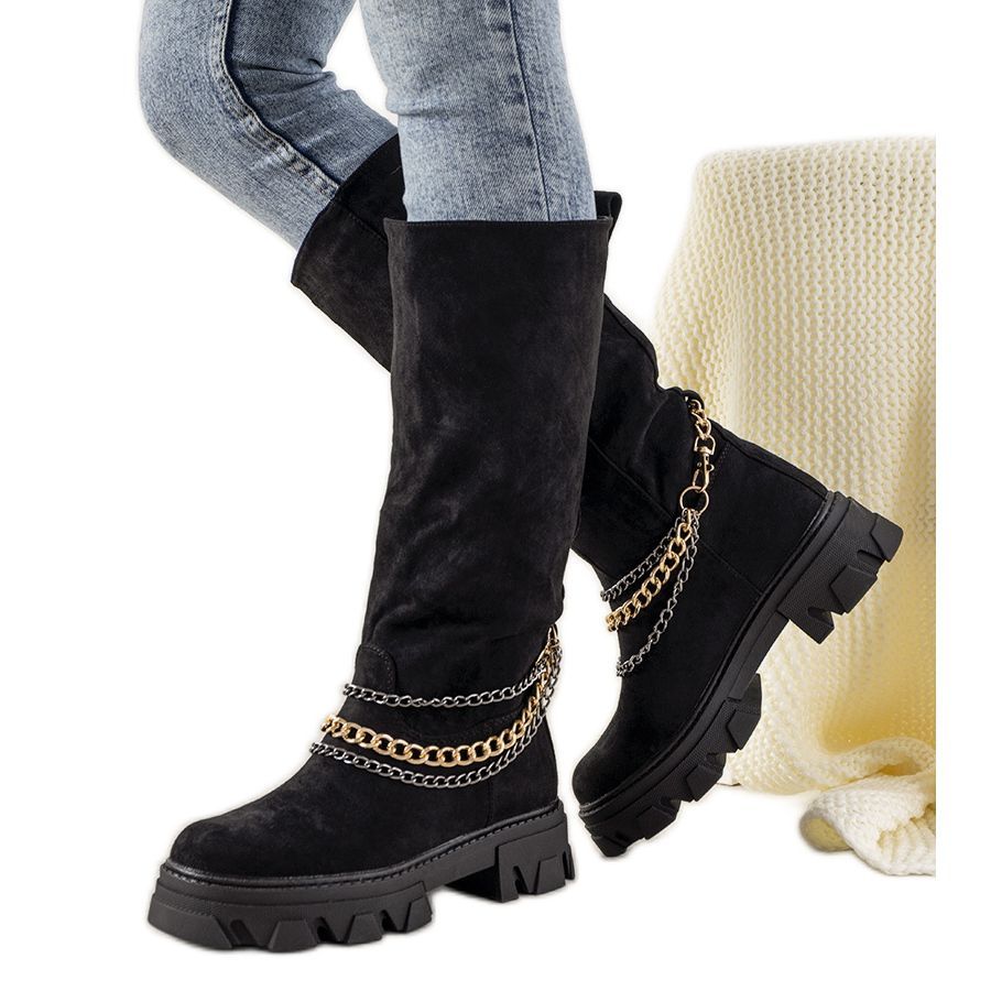 As botas Black Saturday com corrente são uma escolha extremamente elegante para todas as mulheres elegantes. Confeccionados em couro camurça ecológico de alta qualidade, esses botins combinam elegância com design moderno. A corrente dourada que decora a parte superior confere-lhes um carácter único e faz com que se adaptem perfeitamente às últimas tendências.