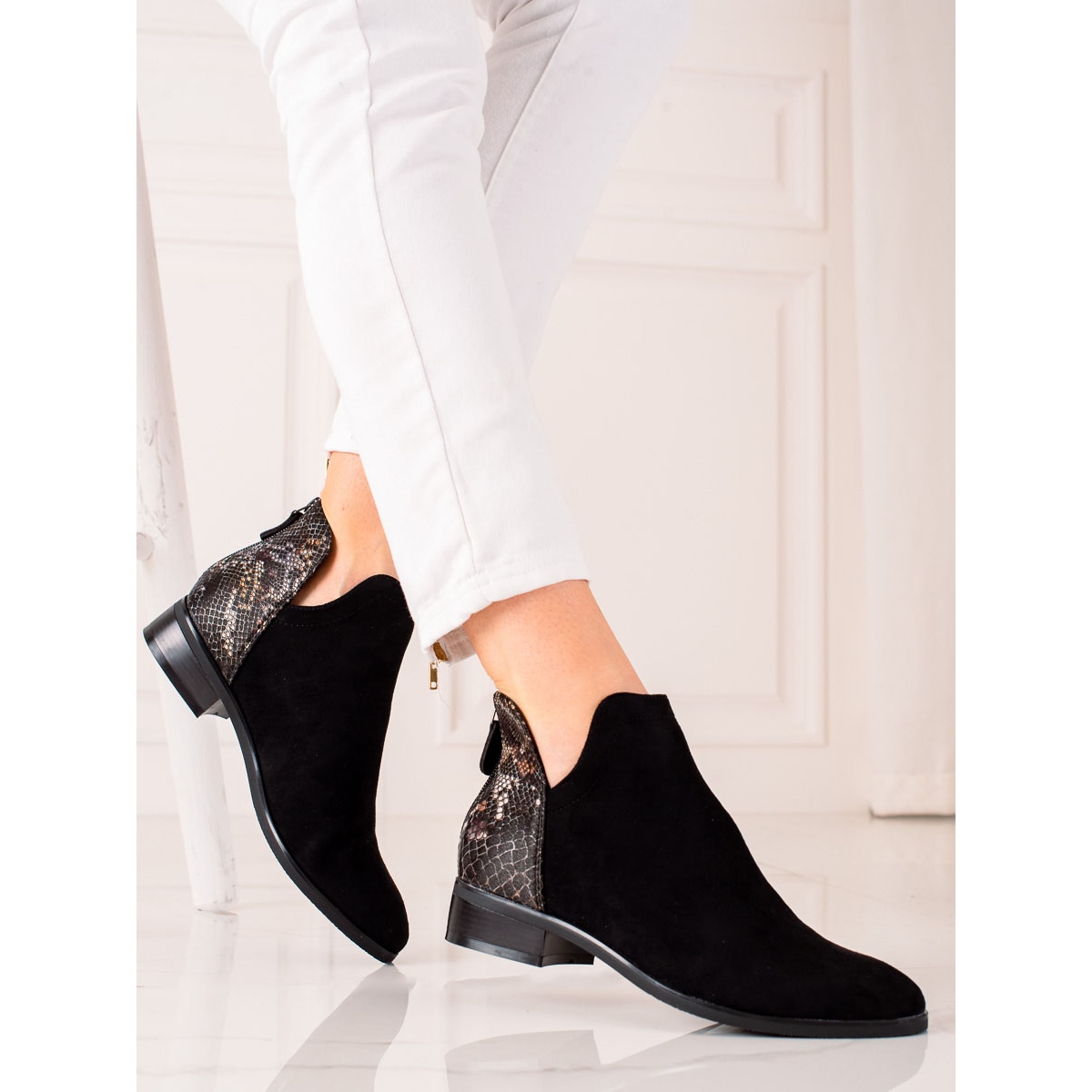Graças ao salto plano de 3 cm de altura, os botins Vinceza proporcionam conforto mesmo após uso prolongado. O zíper facilita calçar e tirar os sapatos, e o padrão animal acrescenta personalidade.
