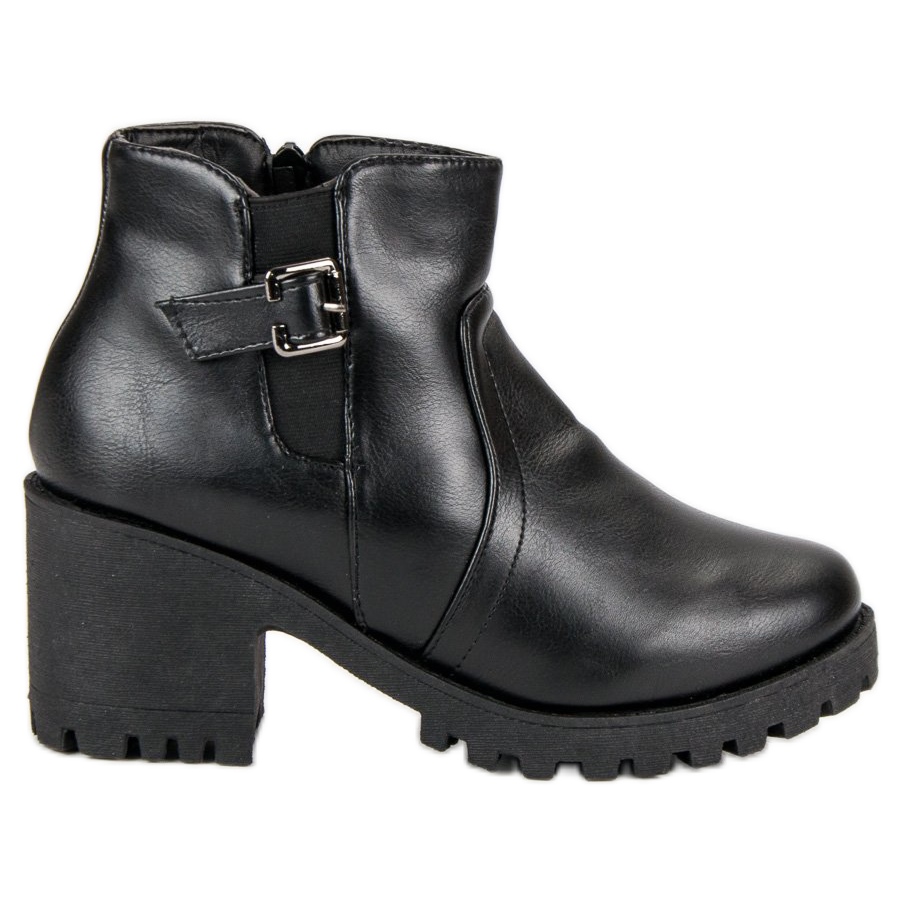Graças ao calcanhar reforçado e à parte superior reforçada, oferecem conforto e estabilidade no uso. A fivela decorativa acrescenta personalidade e a ponta redonda os torna extremamente universais. As botas são equipadas com plataforma de 2 cm de altura e salto bloco de 7,5 cm, o que permite um ótimo apoio para os pés.