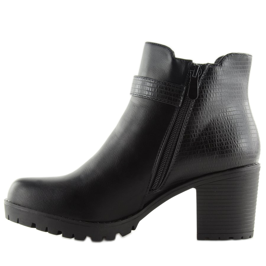 Apresentamos botins de salto largo na clássica cor preta - modelo 18001-6 Preto, que vão refrescar na perfeição a sua coleção de calçado. Estas botas estilosas distinguem-se por um salto estável de 7 cm de altura, que garante conforto de uso durante todo o dia. A sola moderna e presa não só acrescenta personalidade, mas também aumenta a tração, o que é especialmente importante nos dias mais frios.