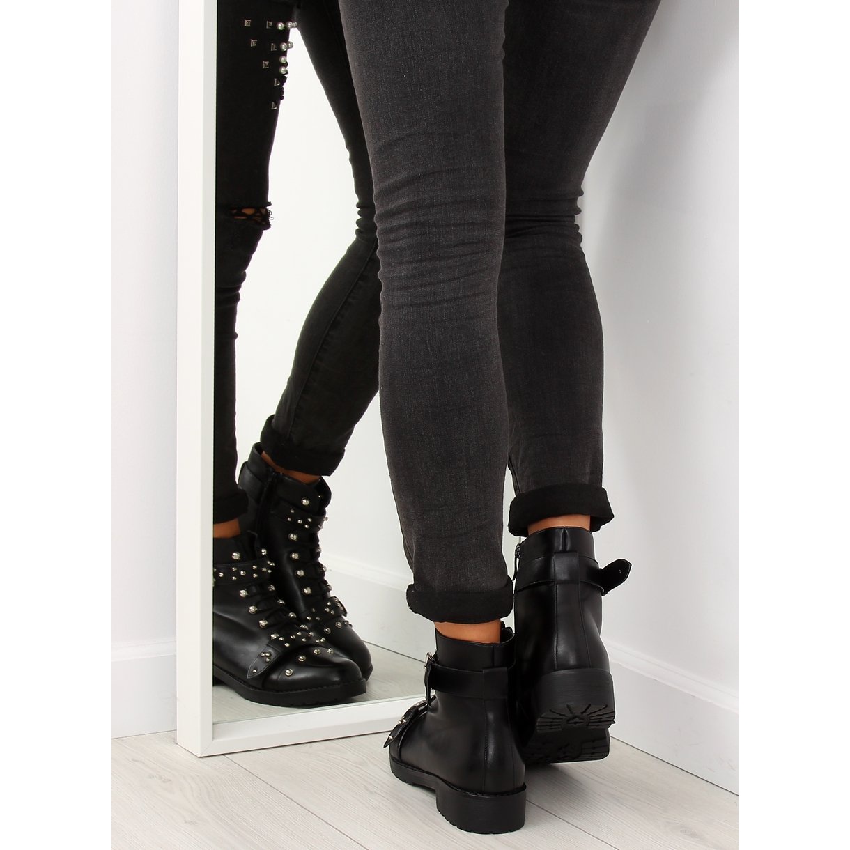 Detalhes: Botas pretas com tachas pretas A3309 pretas preto