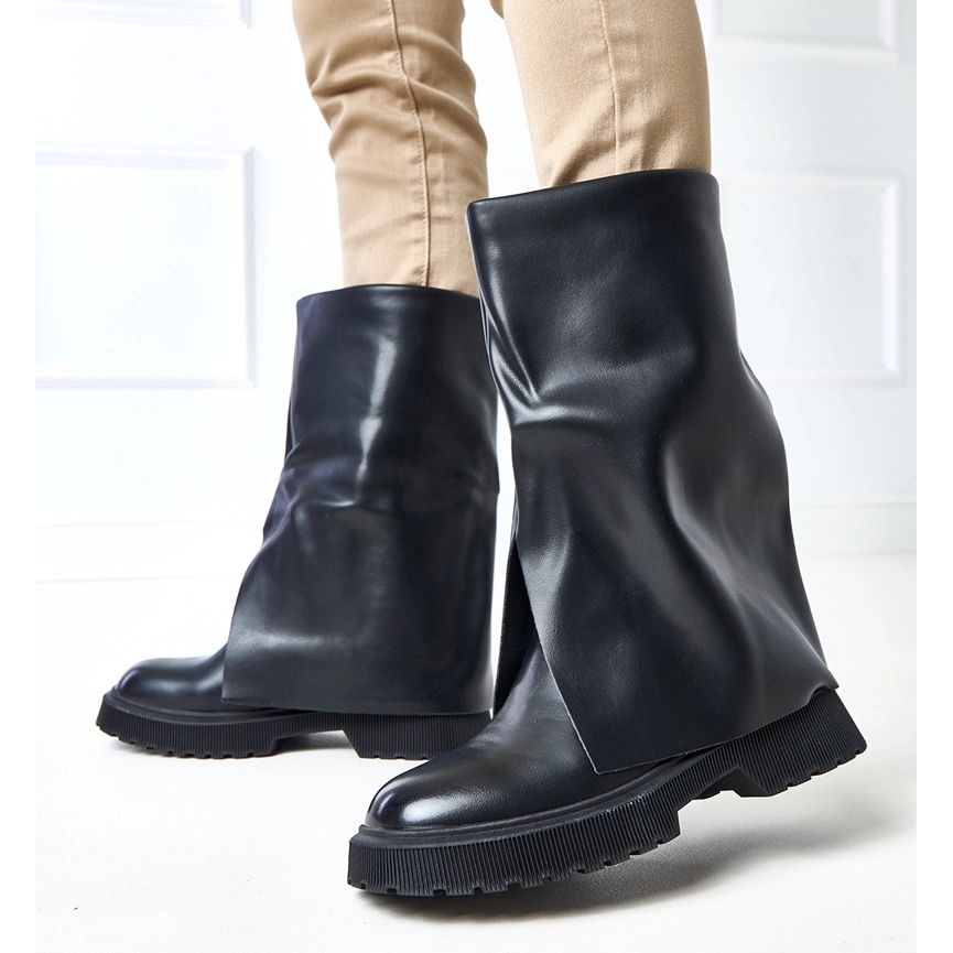 Sua cor preta e universal faz com que eles se misturem perfeitamente com várias estilizações - de jeans casuais a vestidos arejados. A parte superior superior lhes dá modernidade e originalidade, o que os distingue de outros modelos. Graças ao salto plano, com 4 cm de altura, essas botas proporcionam conforto, mesmo em rotas mais longas, perfeitas para resultados diários ou reuniões com amigos.