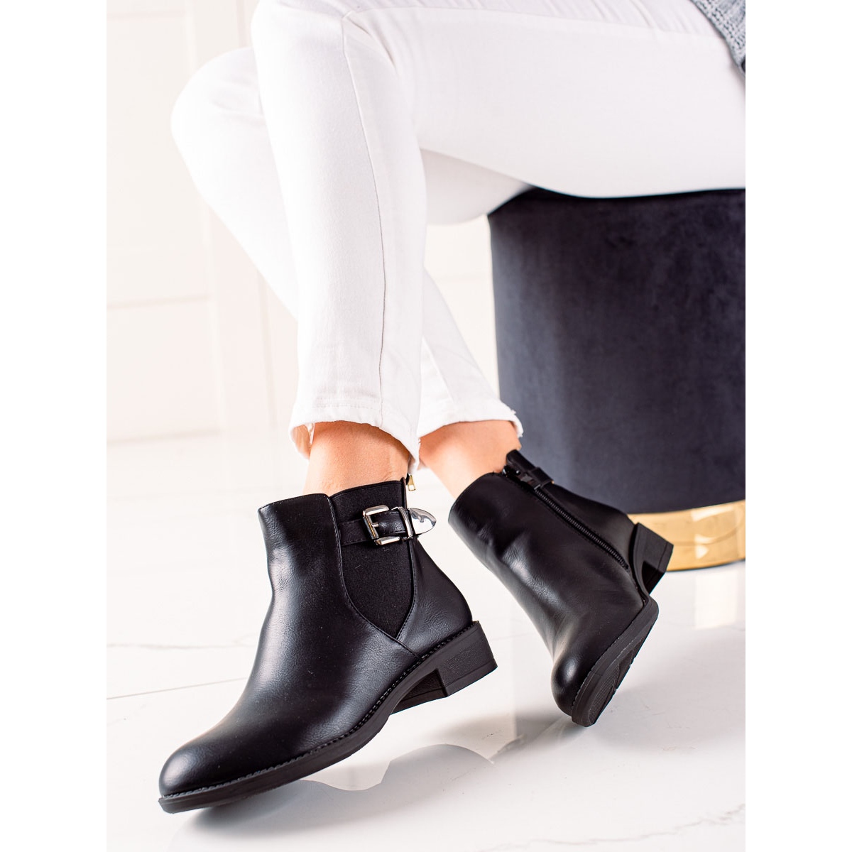 A sola em material sintético proporciona boa aderência e o salto plano de 3 cm de altura acrescenta um charme sutil sem abrir mão do conforto. Uma vantagem adicional das botas é a fivela decorativa que lhes confere carácter. O zíper facilita a colocação, o que é extremamente importante no uso diário.