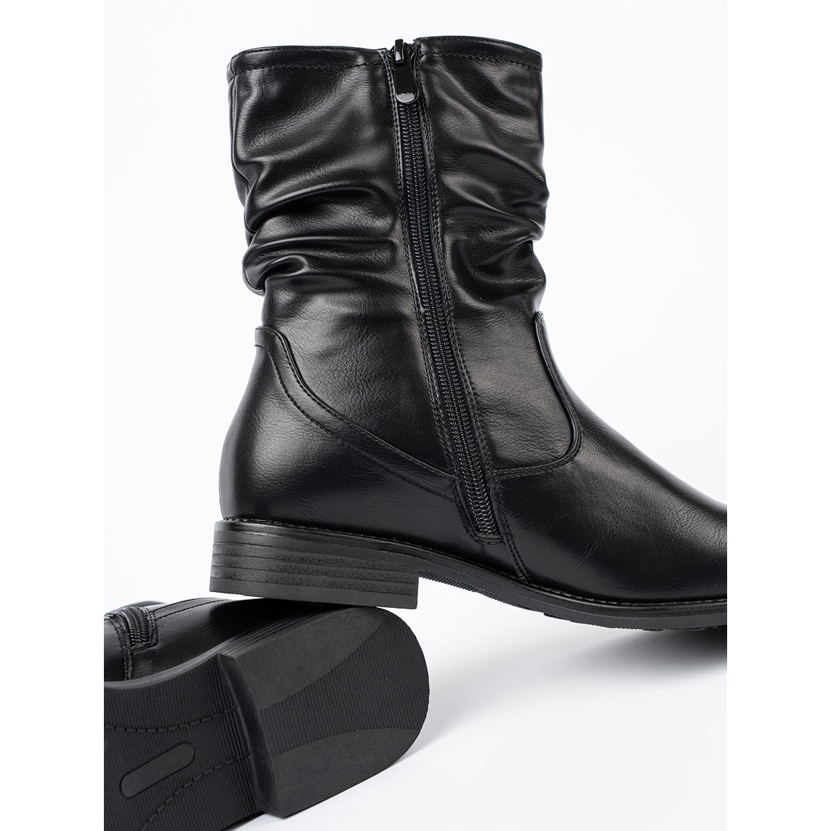 Feito de couro ecológico de alta qualidade, as botas são estéticas e ecológicas. Seu salto e aquecimento construídos proporcionam conforto e calor nos dias mais frios. O interior dos sapatos foi cuidadosamente revestido com material têxtil, o que aumenta ainda mais o conforto do uso.