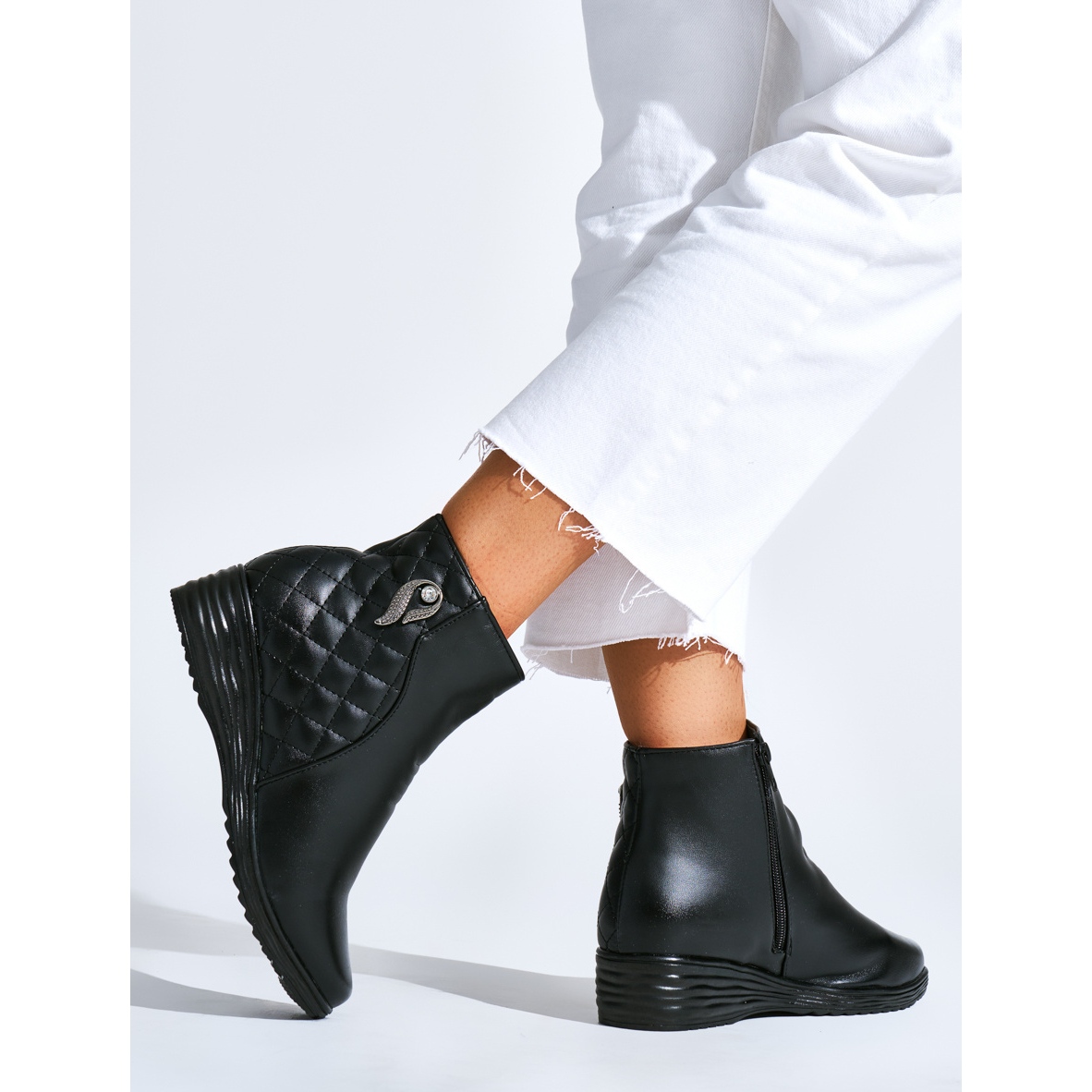 As cunhas pretas confortáveis são a escolha perfeita para mulheres que valorizam o estilo e o conforto. Feito de couro orgânico de alta qualidade, eles parecem elegantes e perfeitamente se encaixam no estilo casual. Eles têm um salto rígido e construído, que fornece suporte adequado ao pé.