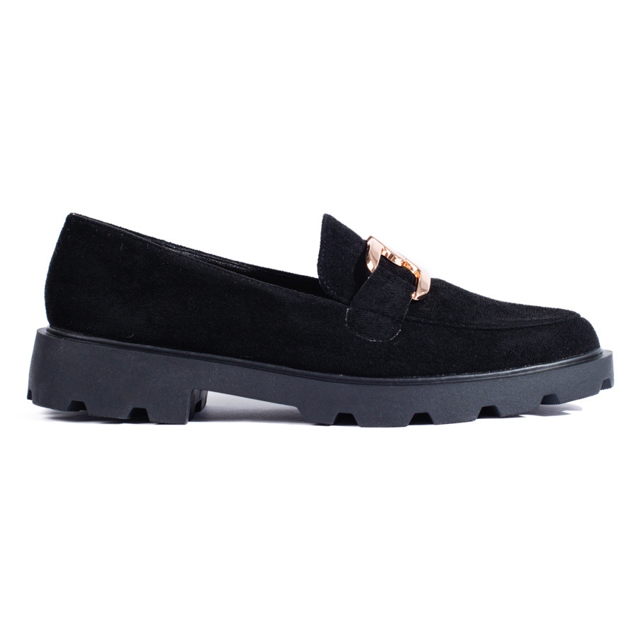 Os sapatos Shelovet em camurça preta com corrente são a escolha ideal para mulheres que valorizam conforto e elegância no dia a dia. Estes elegantes mocassins apresentam um design clássico com bico redondo, o que os torna um complemento perfeito para estilos casuais e mais elegantes.