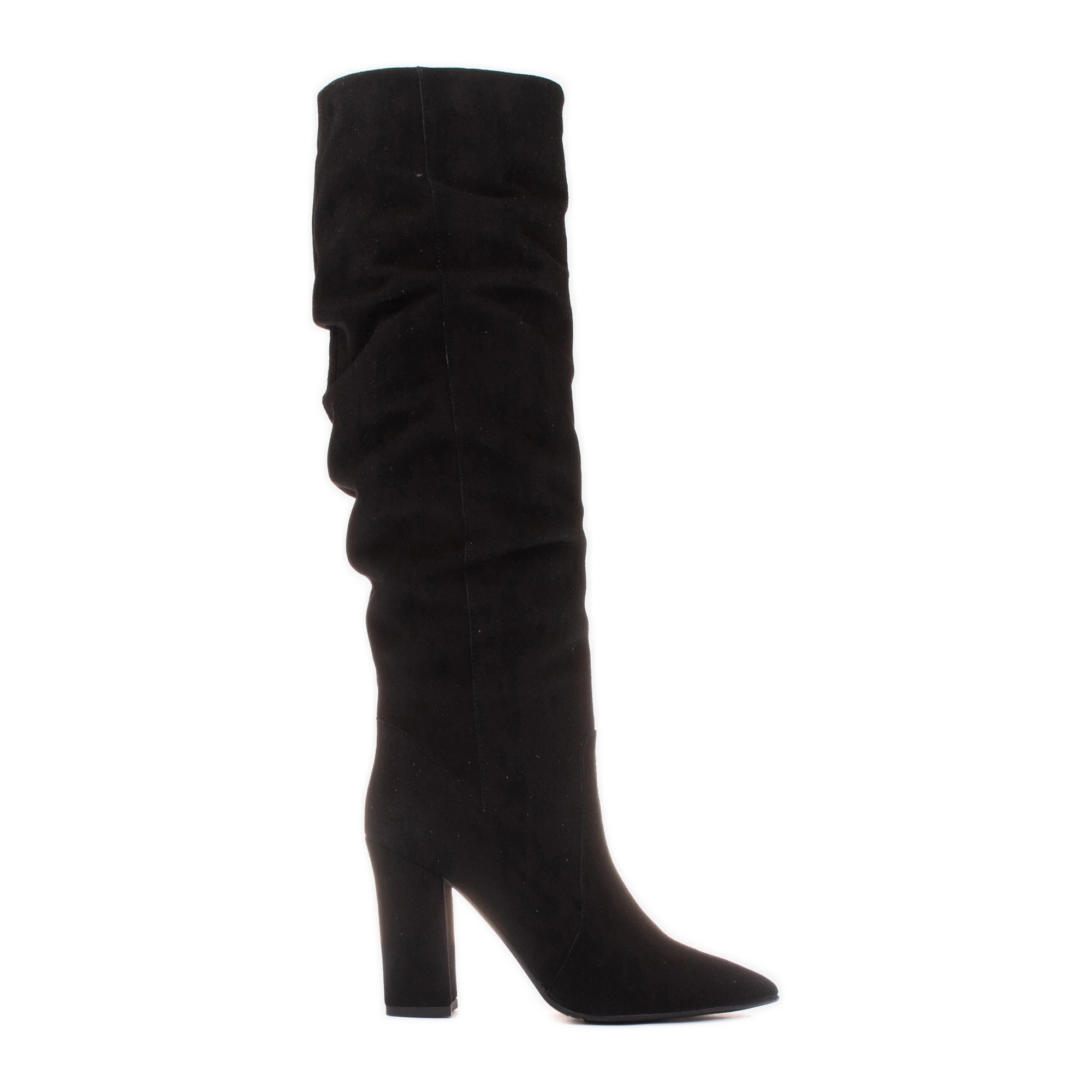 Marco Shoes Marco Shoes Botas pretas de cano alto com babados em camurça natural preto
