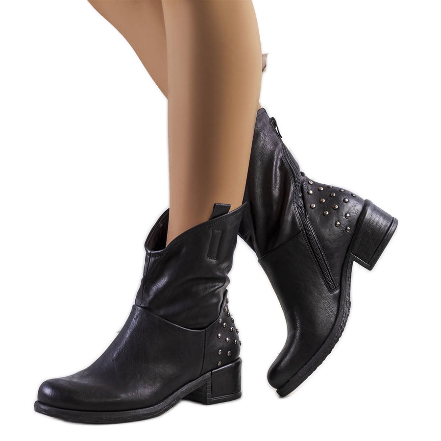 A parte superior das botas é confeccionada em couro ecológico de alta qualidade, o que garante durabilidade e conforto de uso. Um destaque interessante são as escoriações e tachas envelhecidas, que conferem aos sapatos um caráter único. Estes botins da PA1 combinam o estilo moderno com um toque clássico, o que permite criar muitos estilos de moda.
