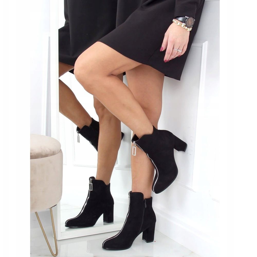 Descubra elegância e estilo único com botins pretos de salto alto 0-320 Black da Inna Marki! Estes botins femininos em camurça, com salto estável de 7,5 cm de altura, vão adicionar charme a qualquer um dos seus estilos. A clássica cor preta combina perfeitamente com o sutil zíper prateado e a decoração brilhante que atrairá todos os olhares.