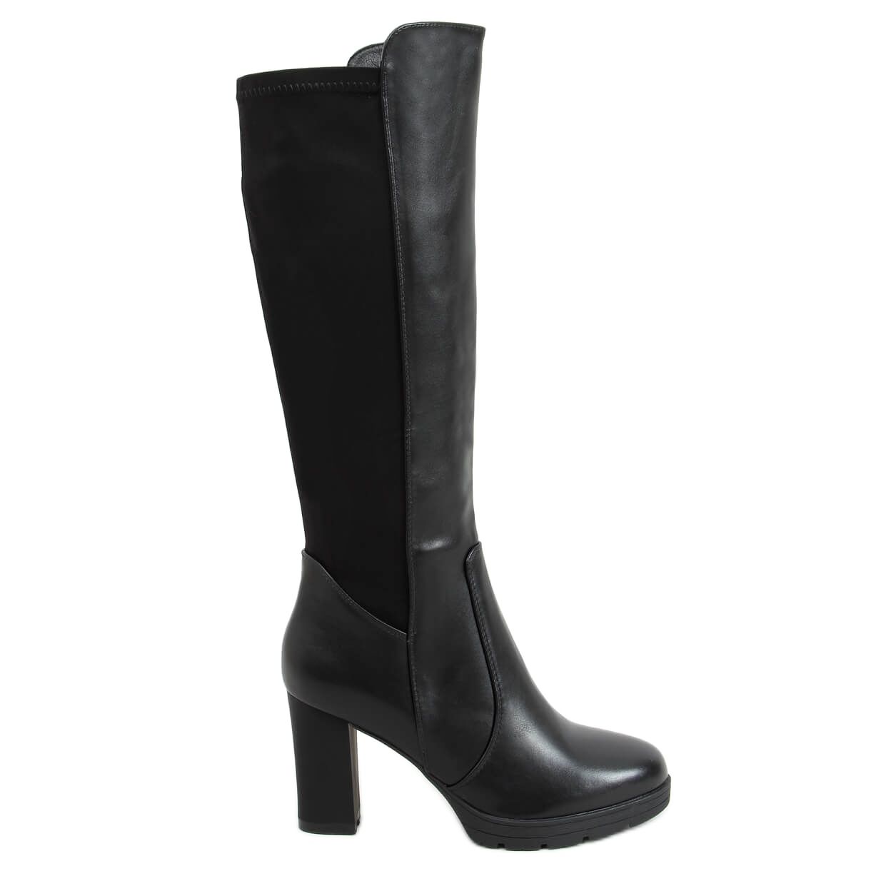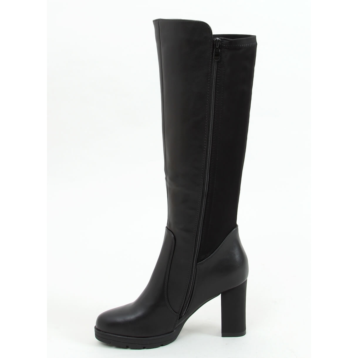 Detalhes: Botas pretas de salto alto com parte superior flexível Y8607 Preto