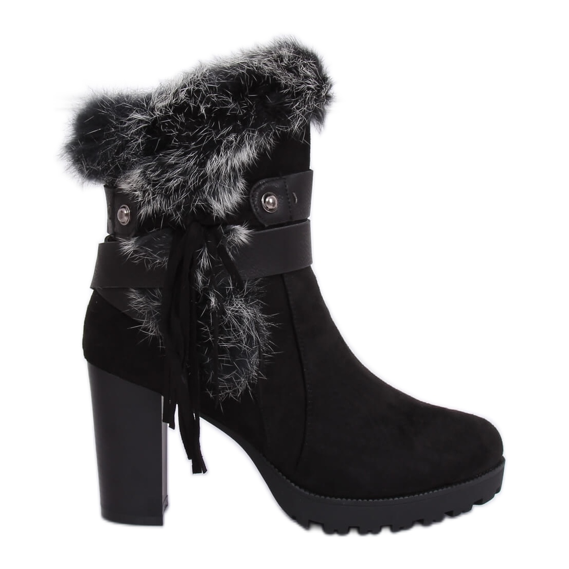 Inna marka Botas pretas de salto alto com pele SP05 Preta preto