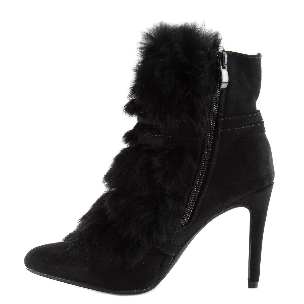 Inna marka Botas pretas de salto alto com pelo preto 1319 Preto