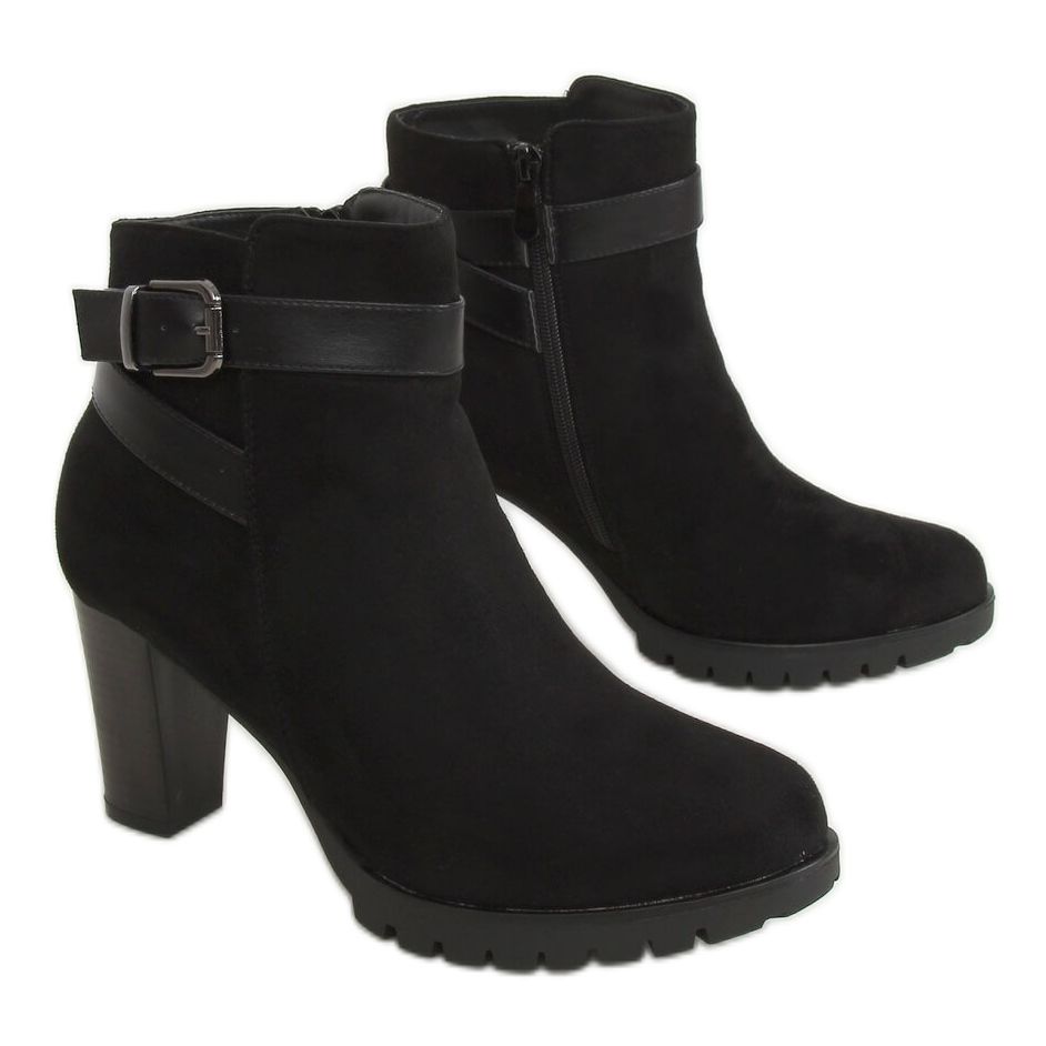 Descubra elegância e conforto com os botins de salto alto J108 Pretos! Estes elegantes botins femininos com 8 cm de altura combinam design intemporal e praticidade. Listras decorativas envolvem delicadamente o tornozelo, conferindo-lhes um caráter único, perfeito para os dias de outono.