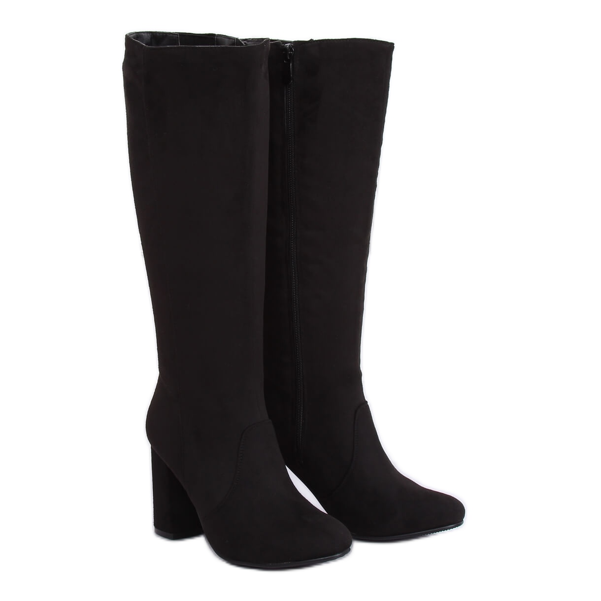Descubra elegância e conforto com as botas pretas de salto alto PE252P Black II Grade. Este é um modelo único confeccionado em camurça ecológica, que se diferencia pelo estilo clássico e corte fashion. As botas têm biqueira arredondada e salto estável de 9 cm, o que as torna a escolha ideal tanto para o dia a dia como para ocasiões elegantes.