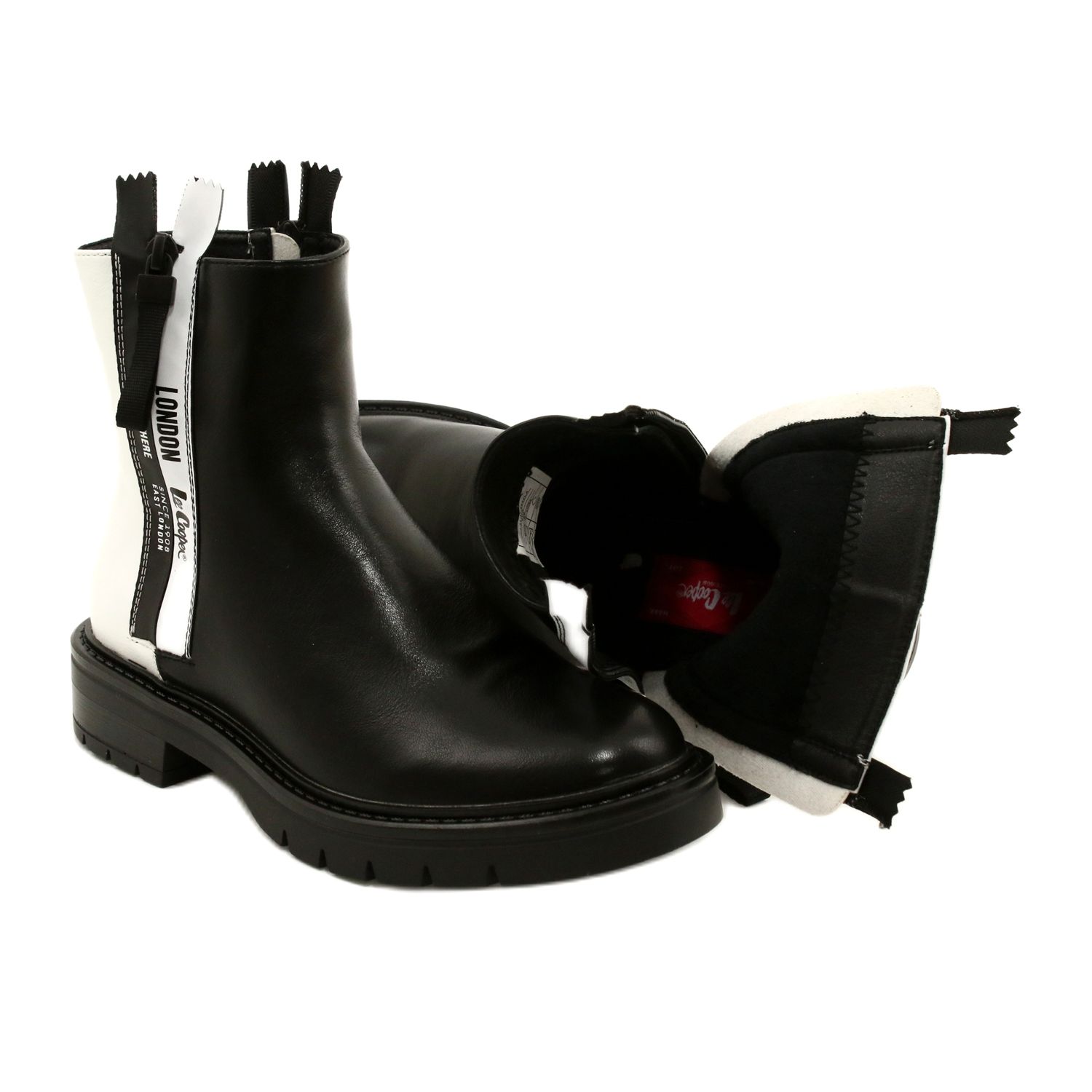 Detalhes: Botas pretas e brancas femininas Lee Cooper LCJ-21-47-0650LA preto