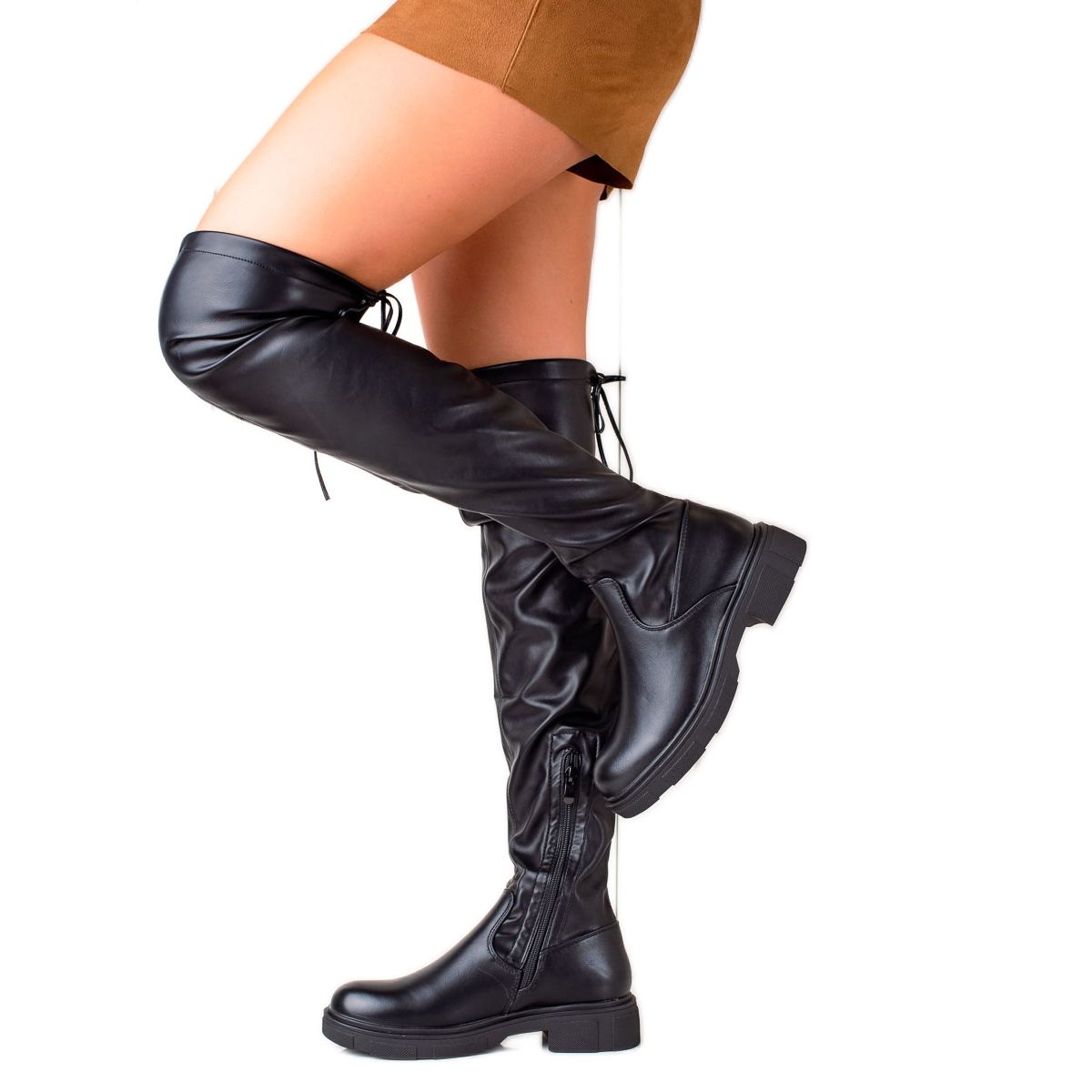 Detalhes: Seastar Botas pretas elegantes com couro ecológico preto