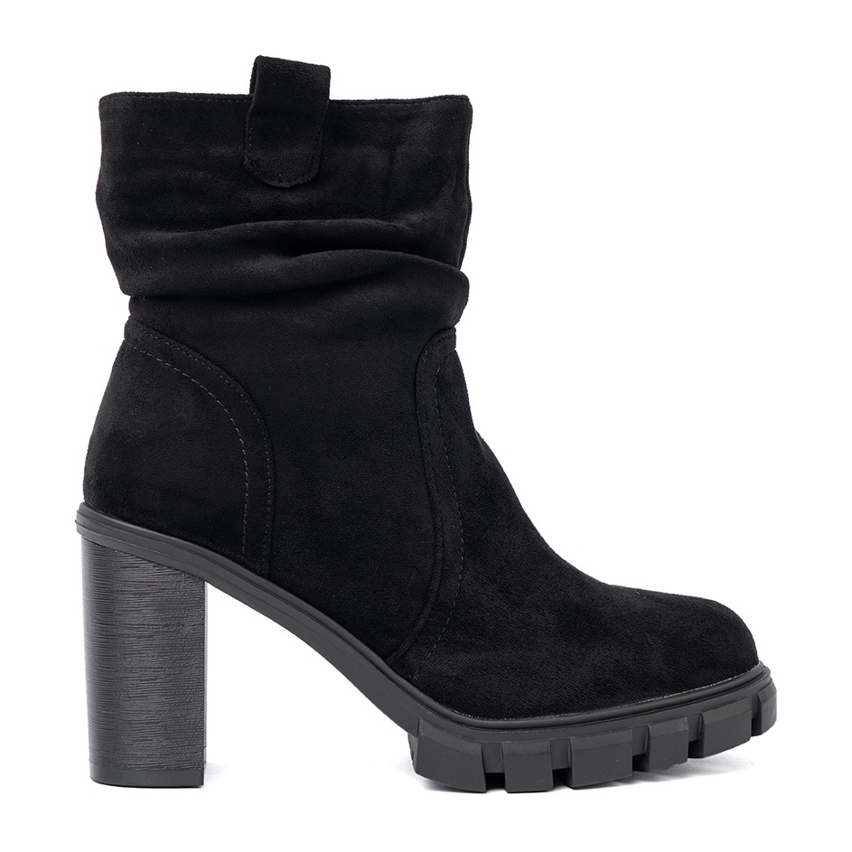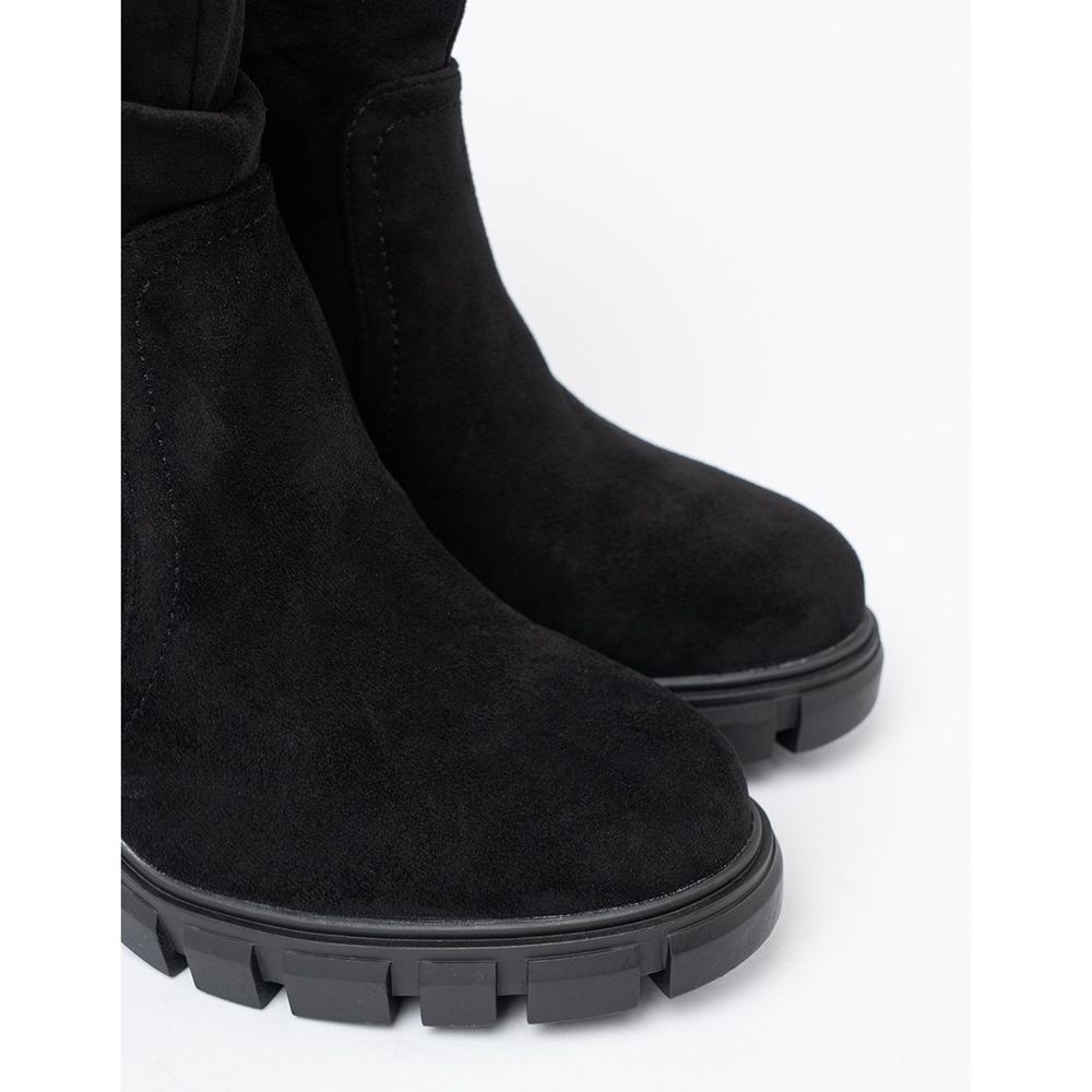 Feito de camurça de imitação de alta qualidade, as botas parecem extremamente atraentes e luxuosas. Sua cor preta os torna universais e facilmente os compõem com várias estilizações. Os 15 cm superiores de altura com babados lhes dão caráter, e o calcanhar -up construído garante estabilidade e conforto do desgaste.