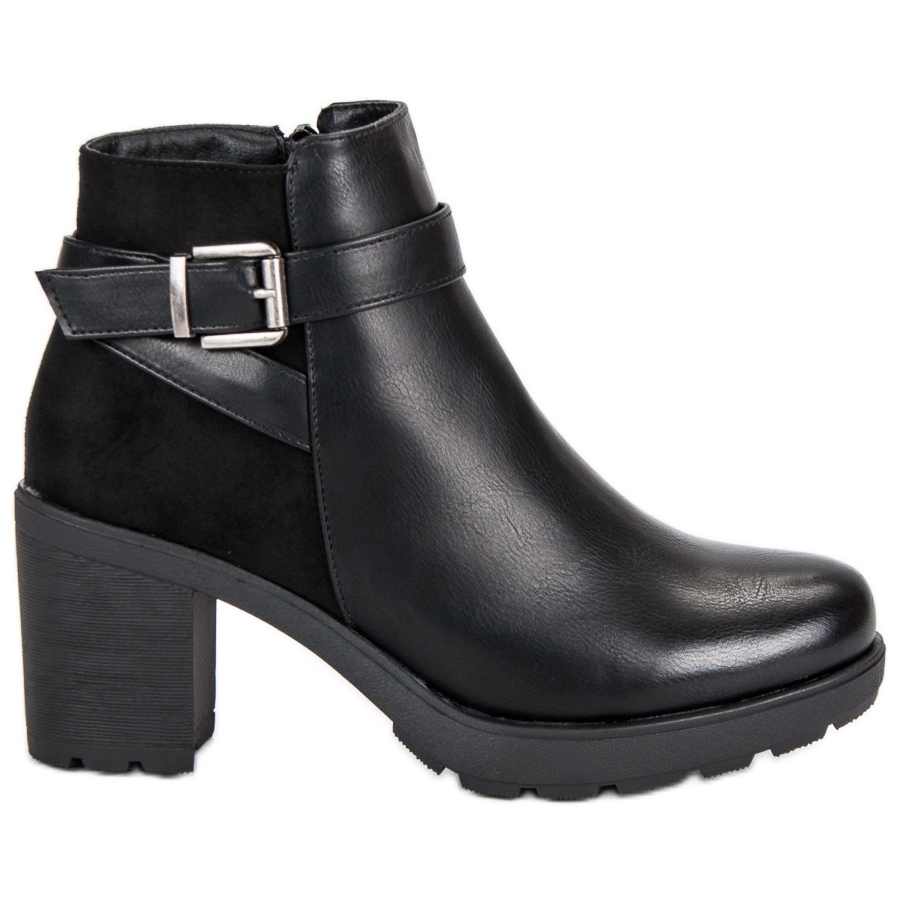 Confeccionadas em couro ecológico e camurça de alta qualidade, essas botas não são apenas estéticas, mas também práticas - não riscam e mantêm sua aparência original por muito tempo. O isolamento deixa os pés confortáveis mesmo nos dias mais frios. As clássicas cores pretas e um padrão minimalista permitem muitas interpretações estilísticas, e a altura do tornozelo e o salto macio garantem conforto.