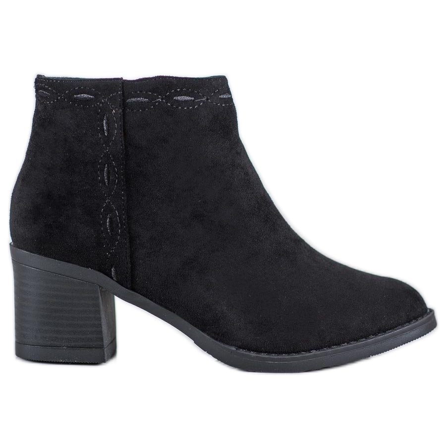 Apresentamos os Botins Kylie Pretos de Salto Alto - uma escolha perfeita para todas as mulheres que querem estar elegantes sem sacrificar o conforto. Estes elegantes botins na clássica cor preta são confeccionados em camurça ecológica da mais alta qualidade, o que os torna não só na moda, mas também ecológicos.
